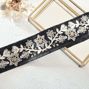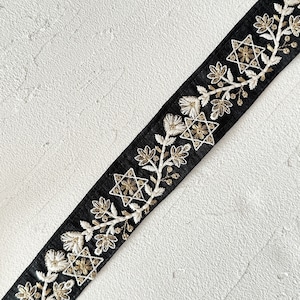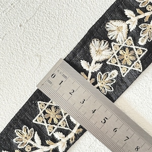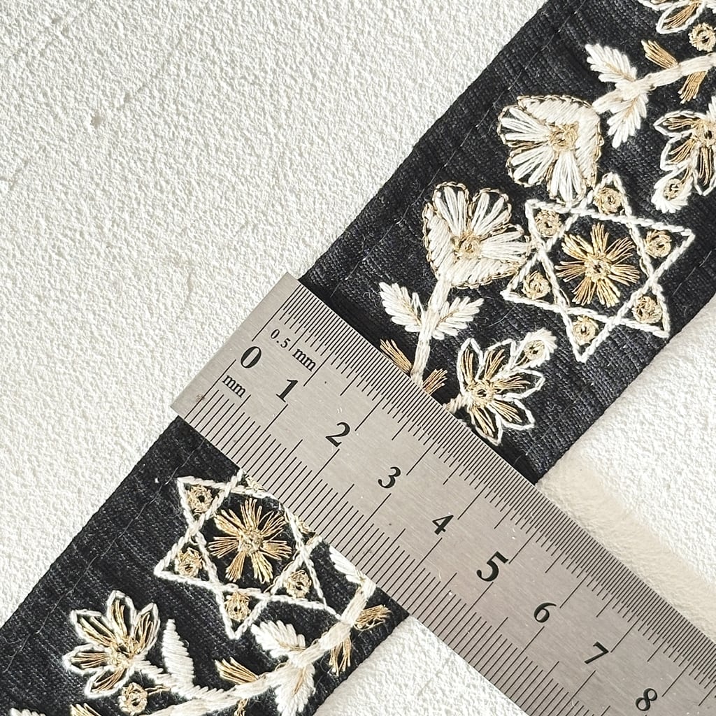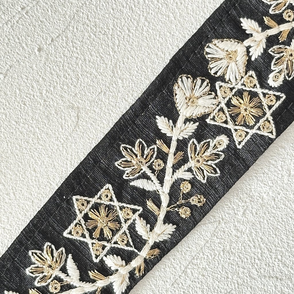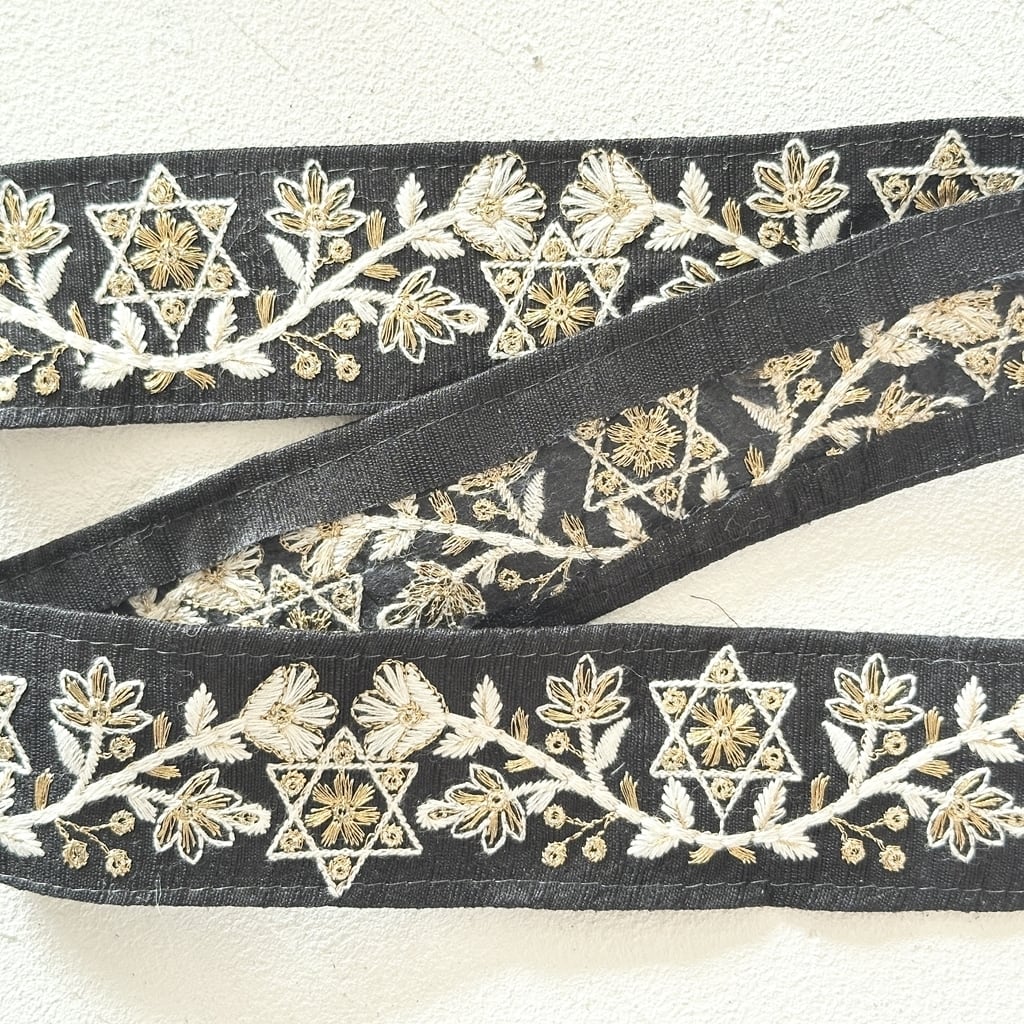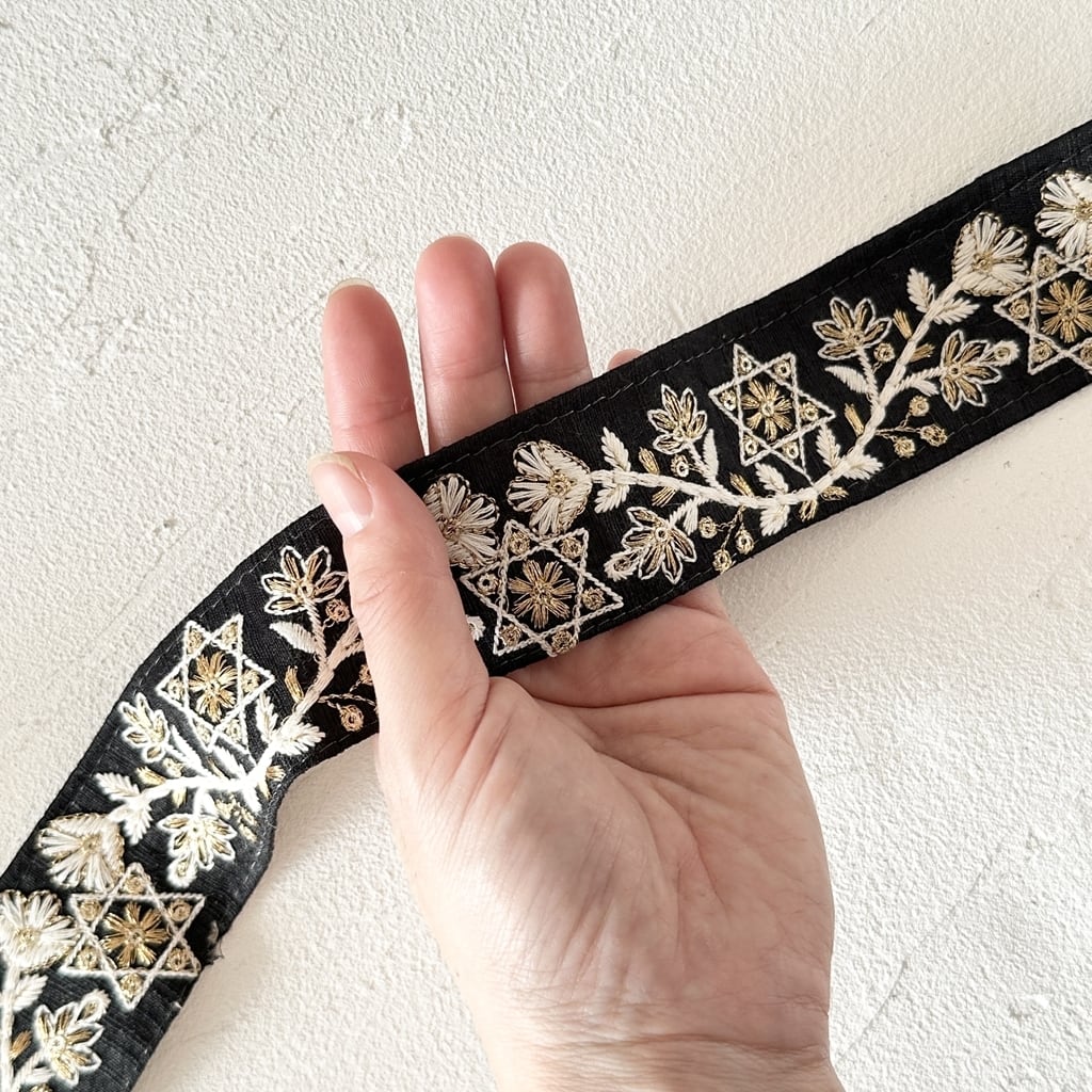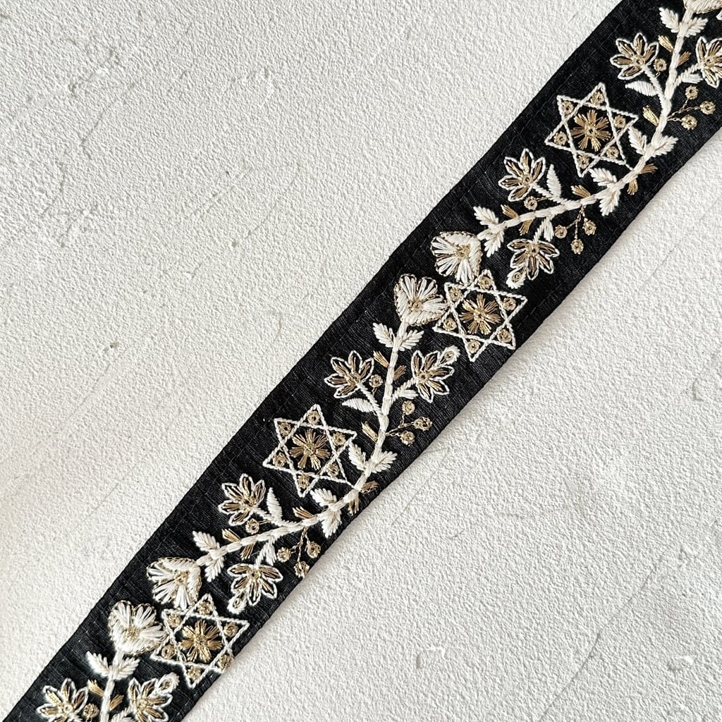 1ロール スター [ブラック] インド刺繍リボン 3406-1R