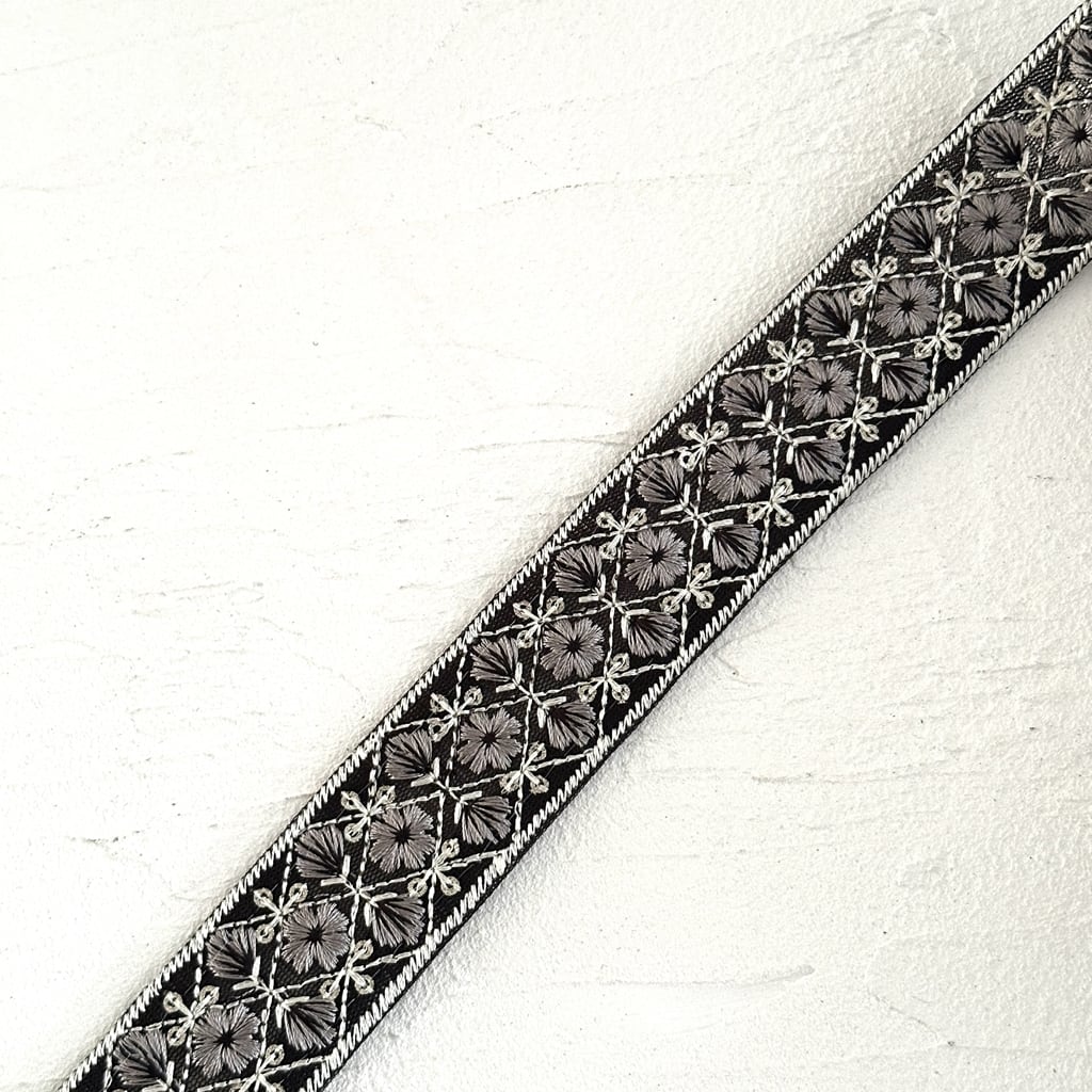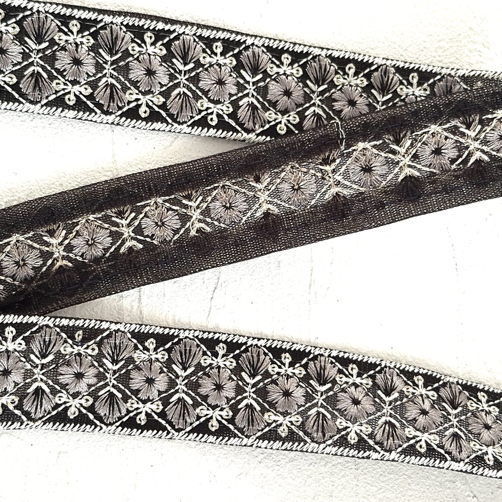 モザイクスリム [ブラック]インド刺繍リボン 3509