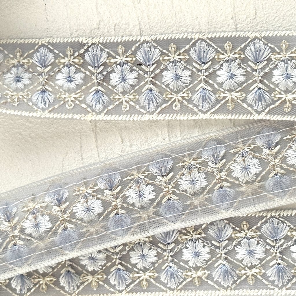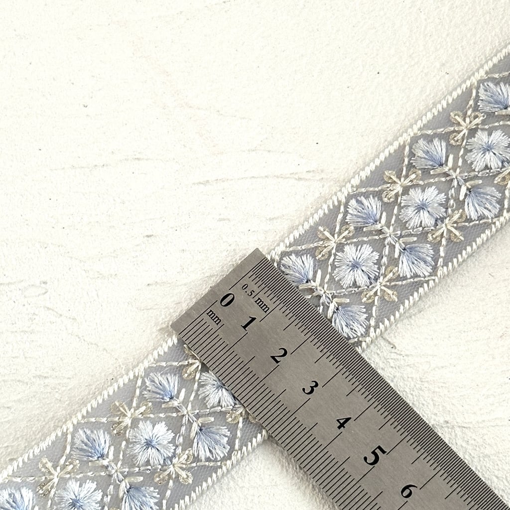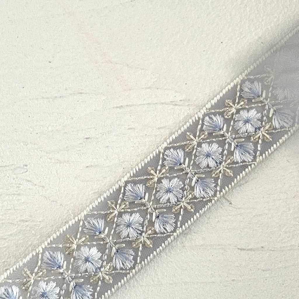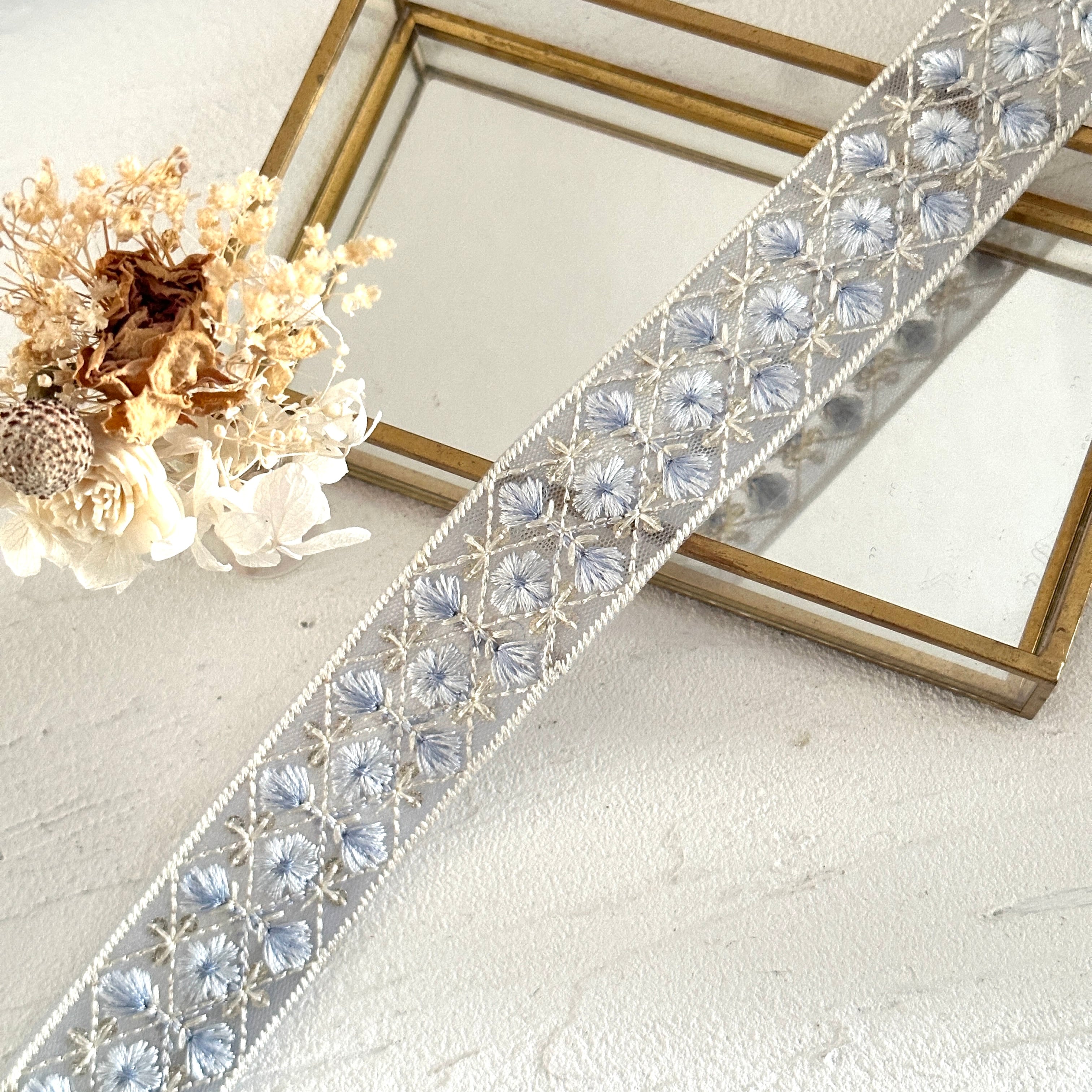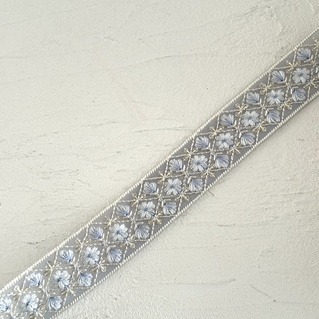 モザイクスリム [サックス]インド刺繍リボン 3511