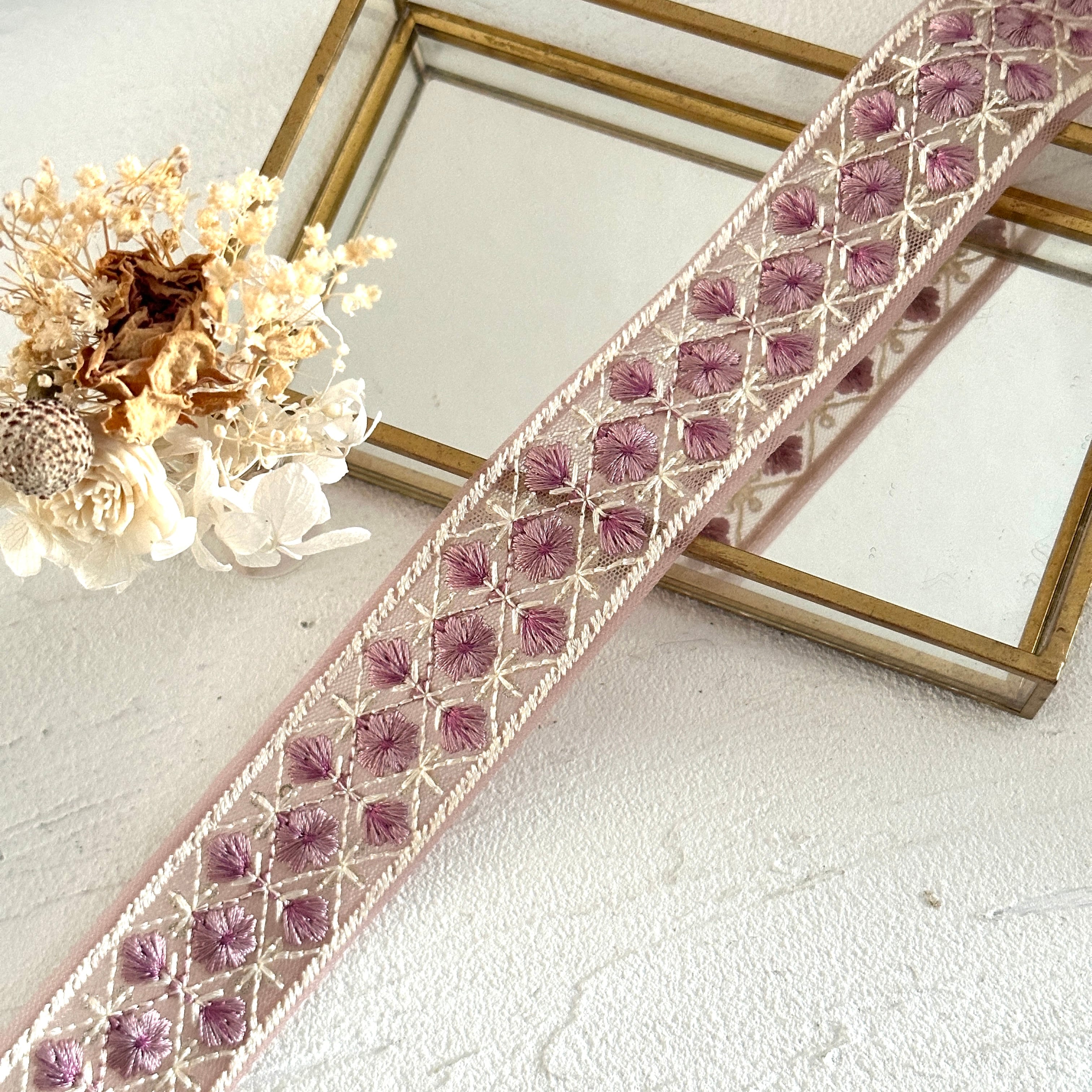 インド刺繍リボンは、細かい刺繍が施されていて色も鮮やかなリボンです。