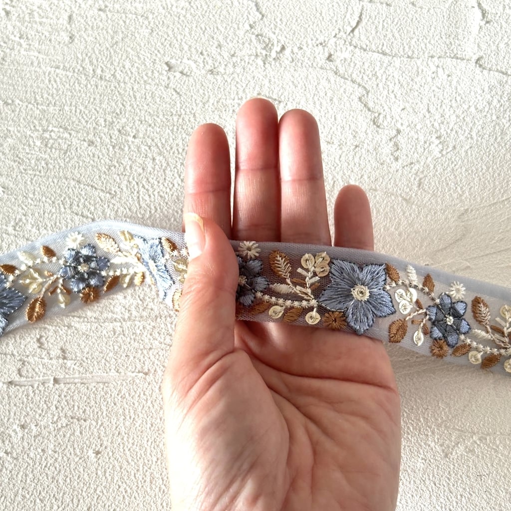 インド刺繍リボンは、細かい刺繍が施されていて色も鮮やかなリボンです。