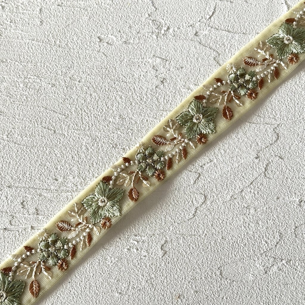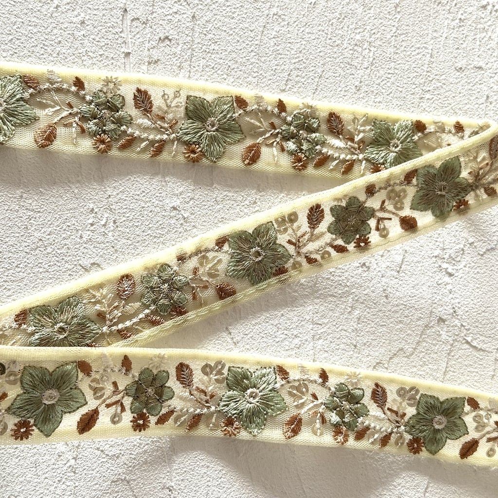 エトワール [グリーン]インド刺繍リボン 3517