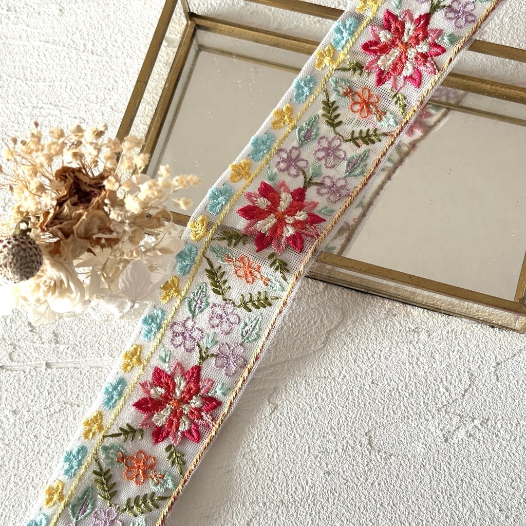 インド刺繍リボンは、細かい刺繍が施されていて色も鮮やかなリボンです。