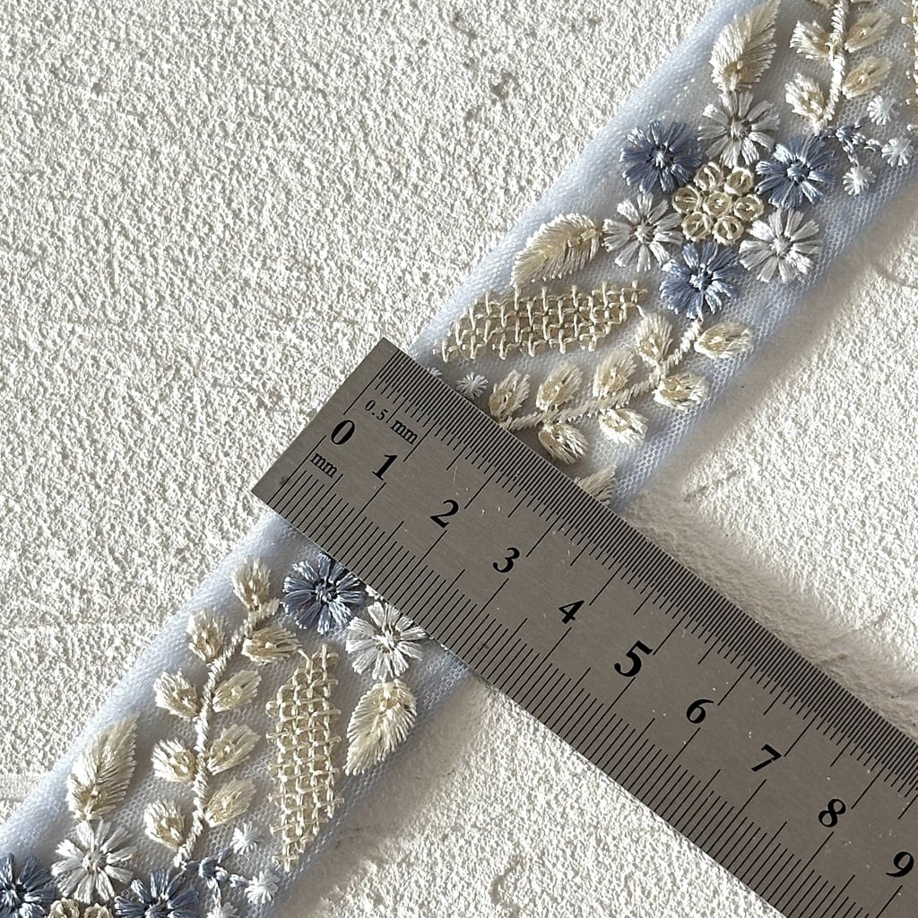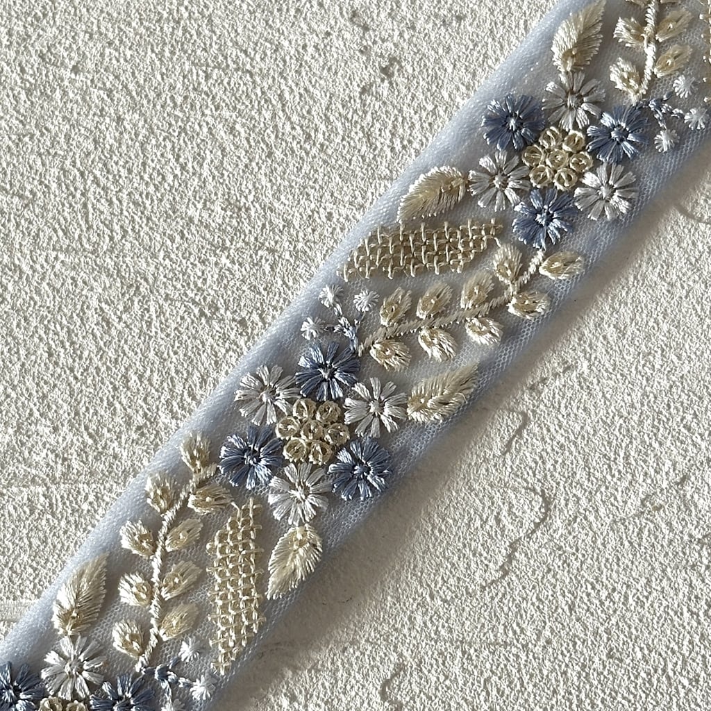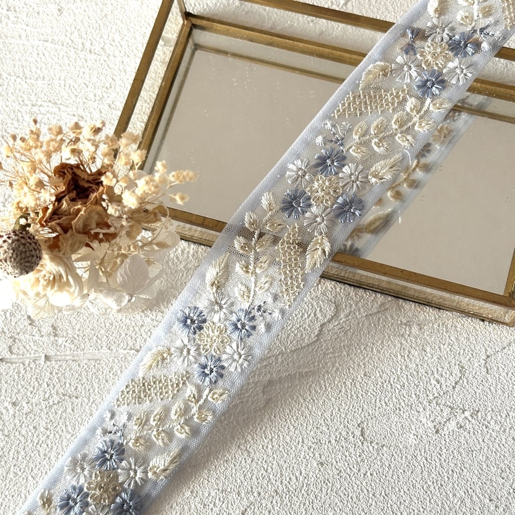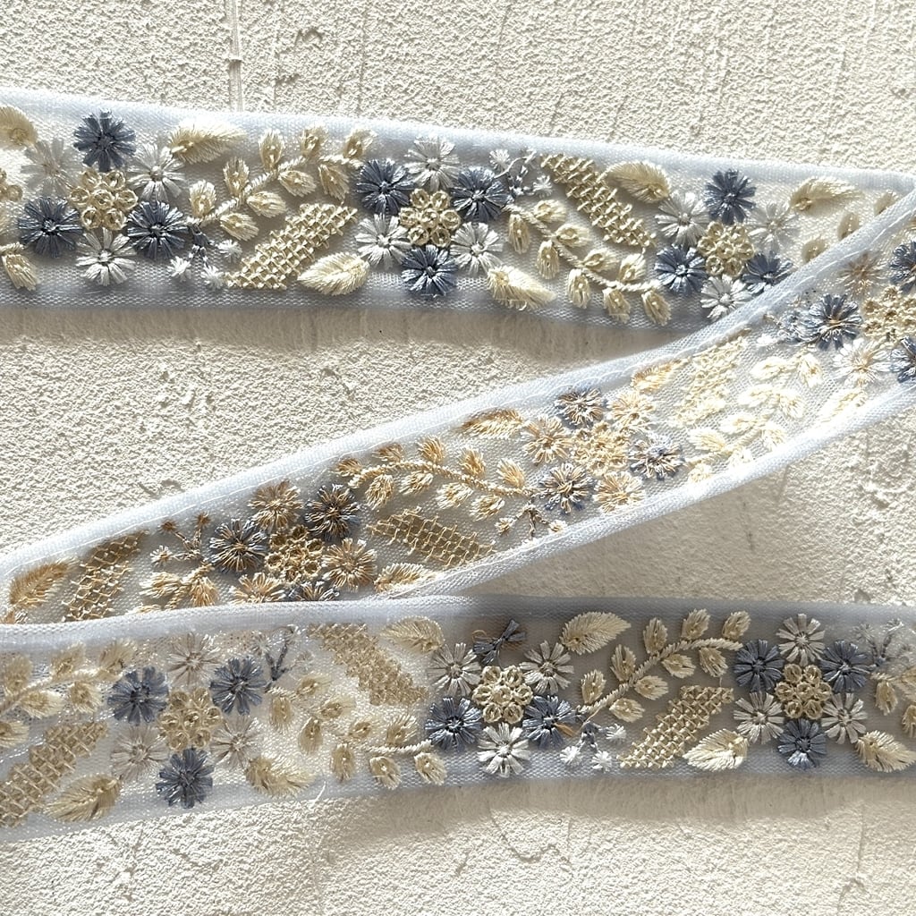 キュートフラワー [サックス]インド刺繍リボン 3529