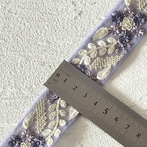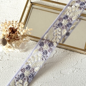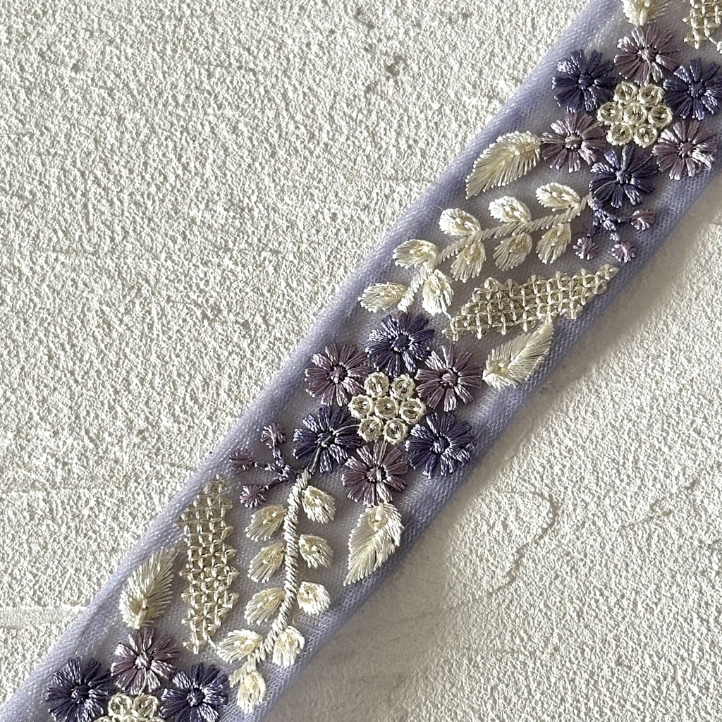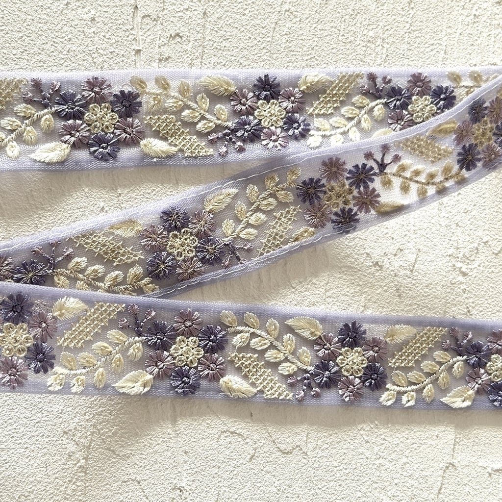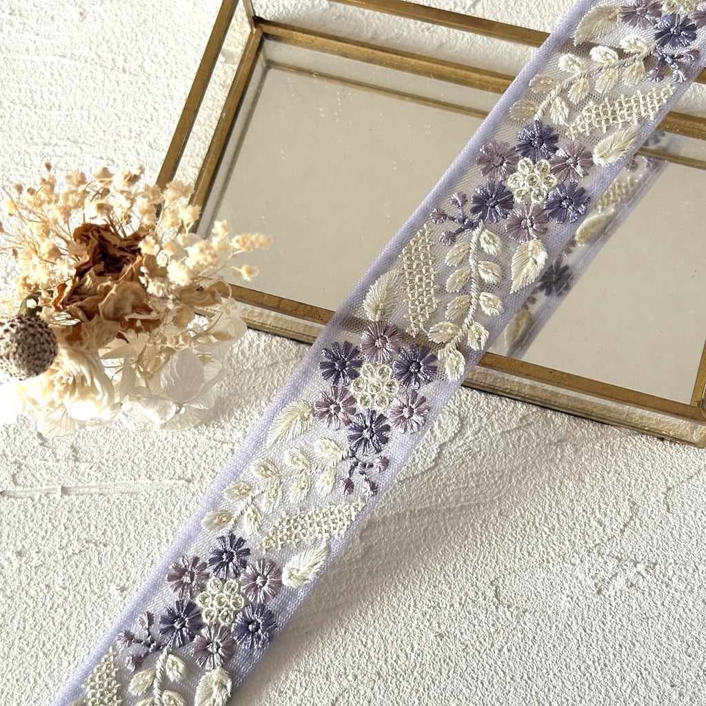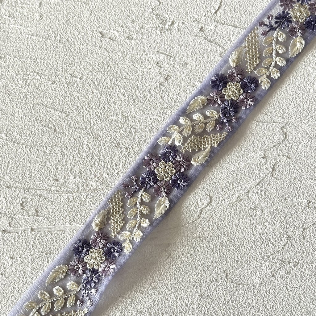 キュートフラワー [パープル]インド刺繍リボン 3530