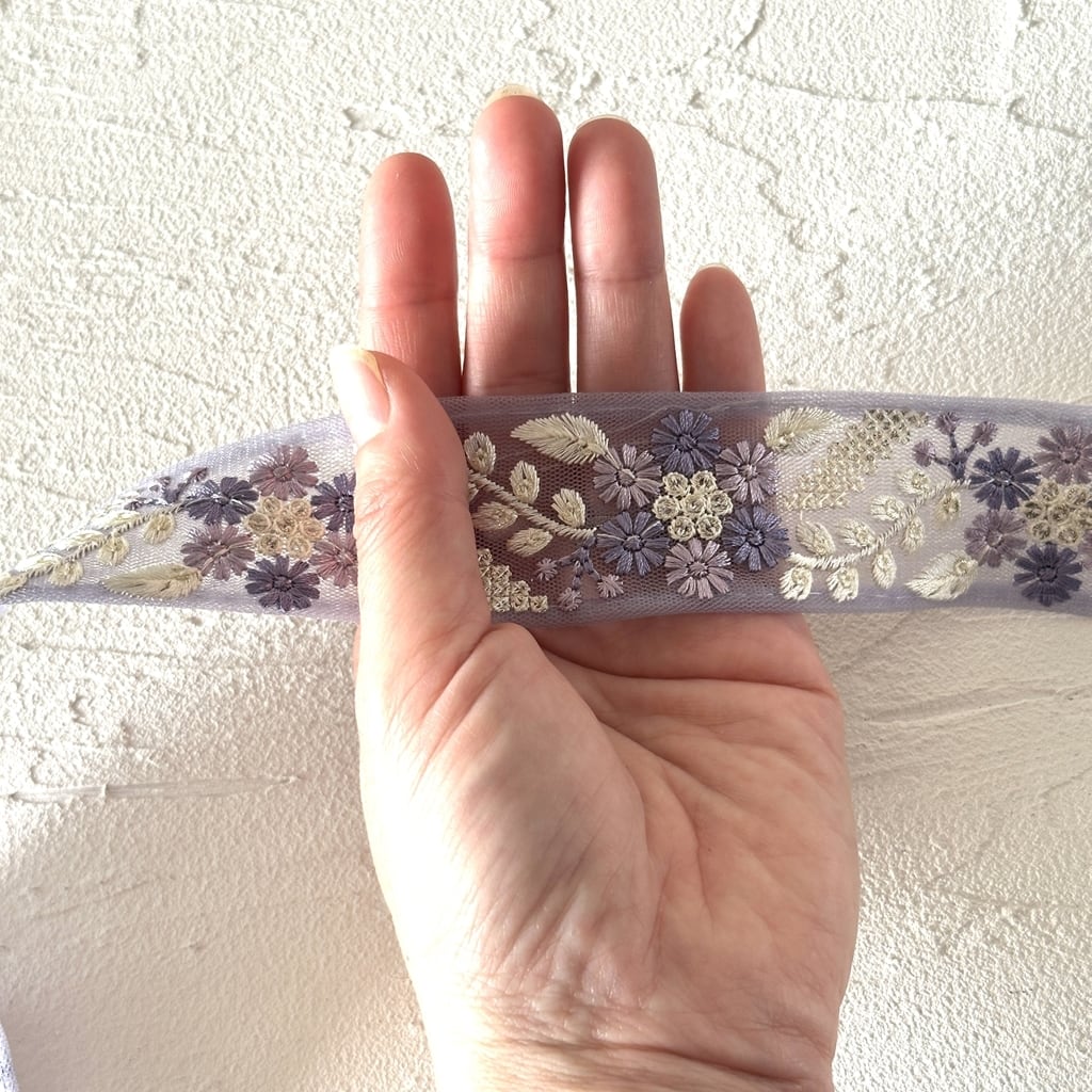インド刺繍リボンは、細かい刺繍が施されていて色も鮮やかなリボンです。