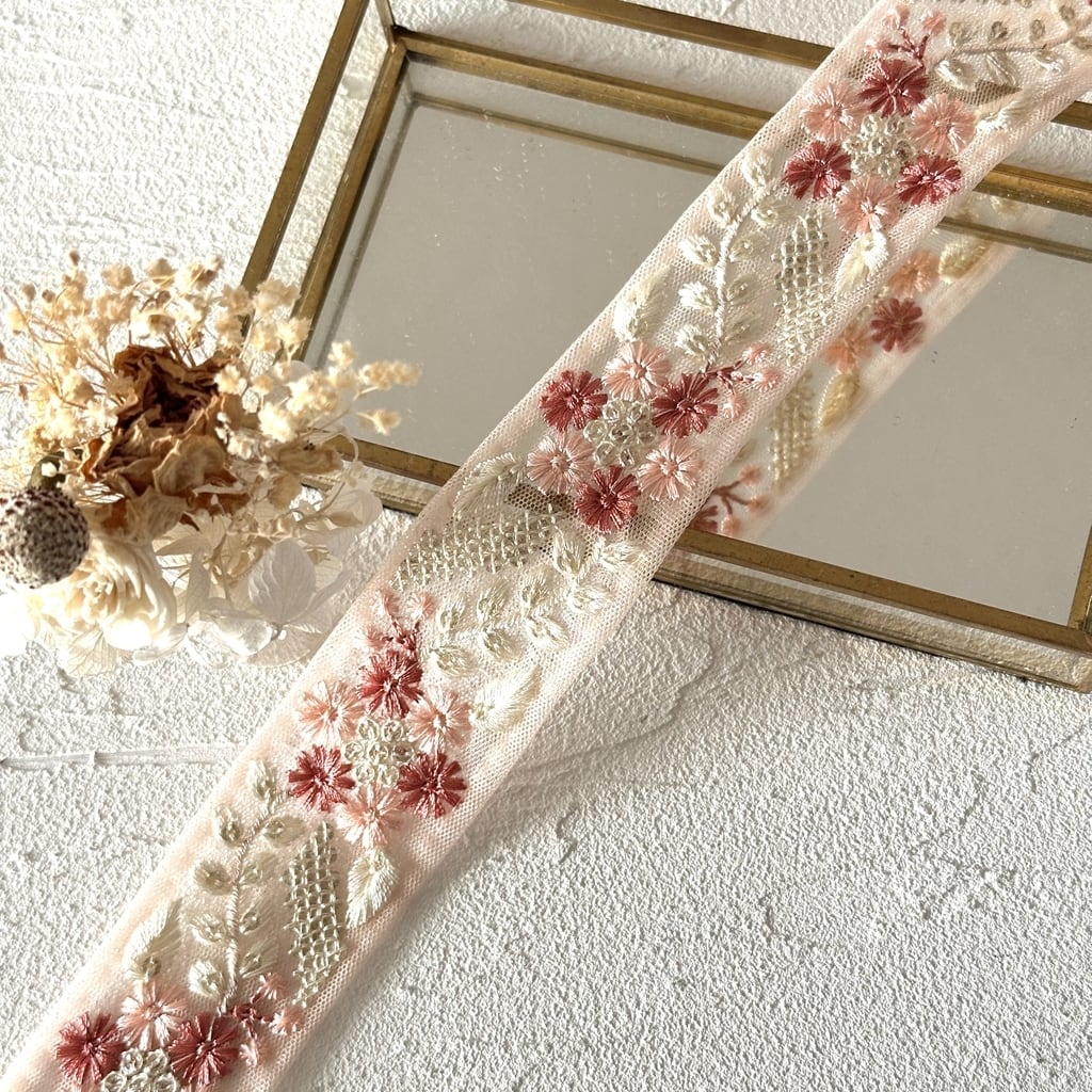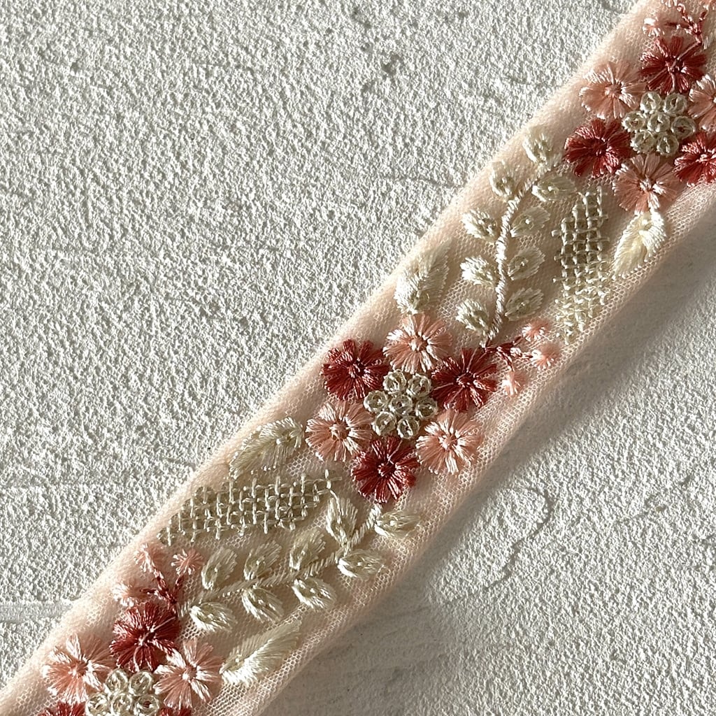 キュートフラワー [アプリコット]インド刺繍リボン 3533