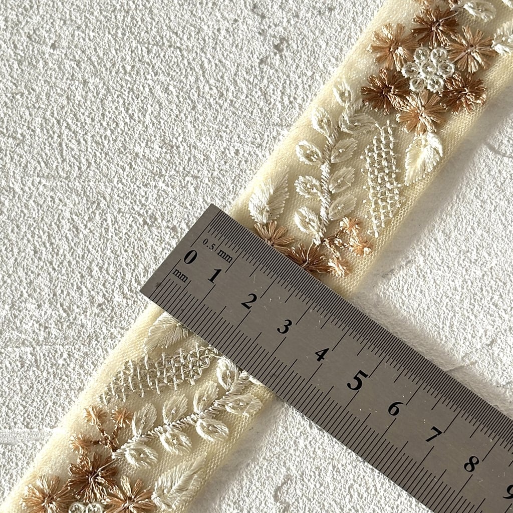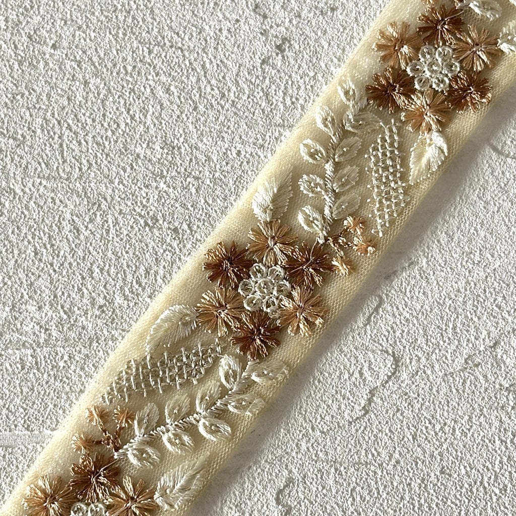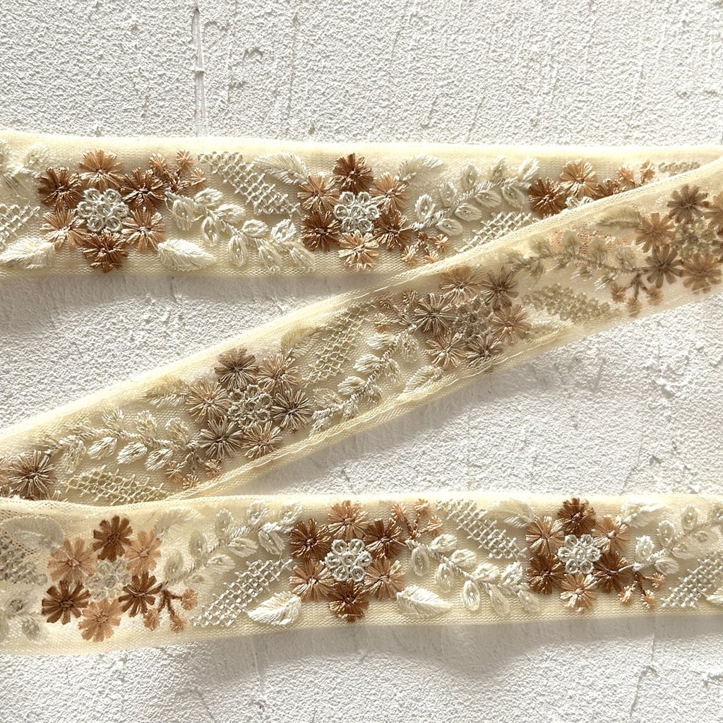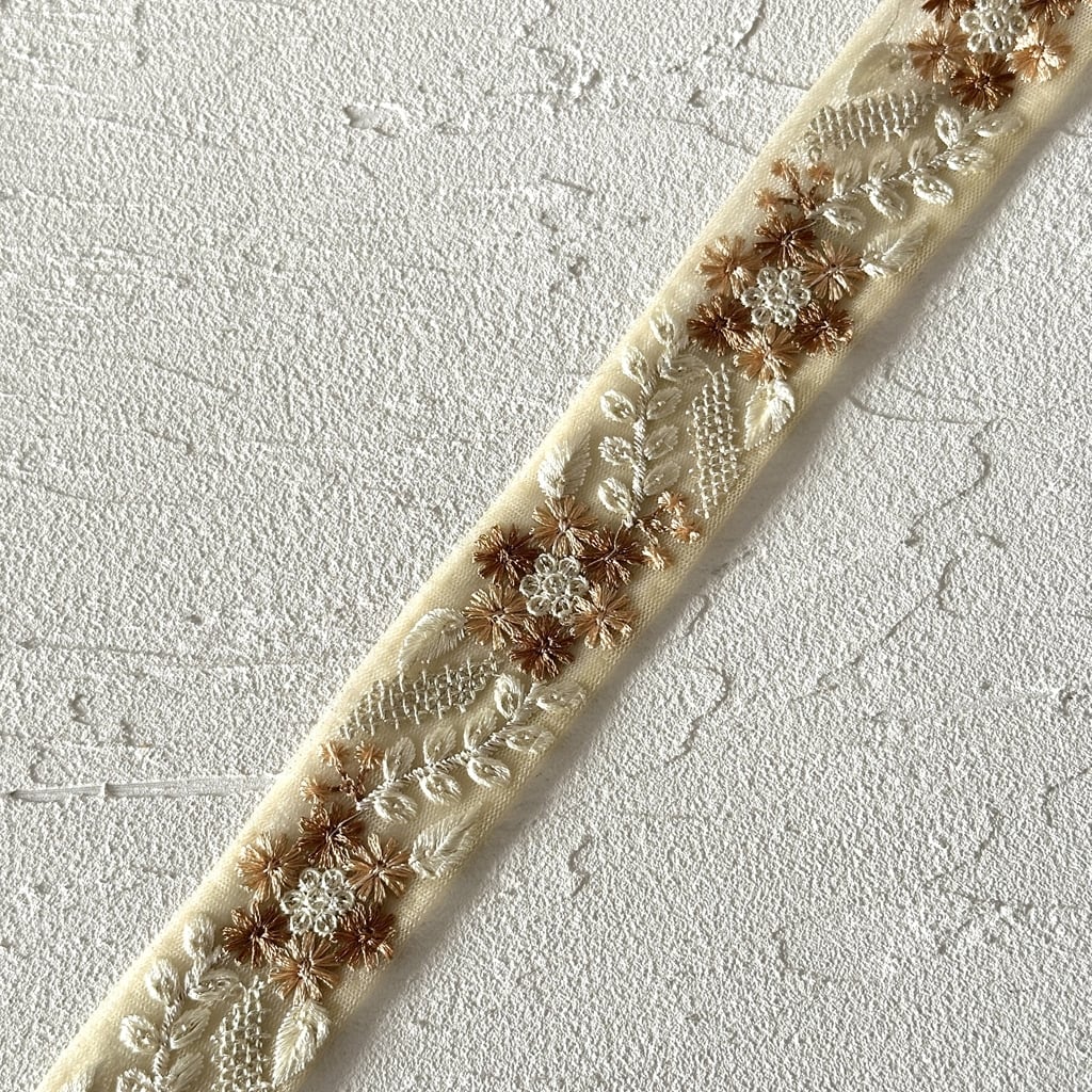 キュートフラワー [ブラウン]インド刺繍リボン 3534