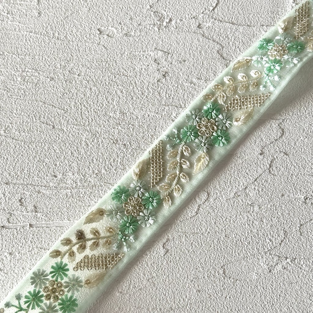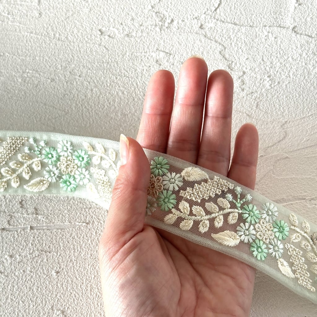 インド刺繍リボンは、細かい刺繍が施されていて色も鮮やかなリボンです。