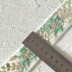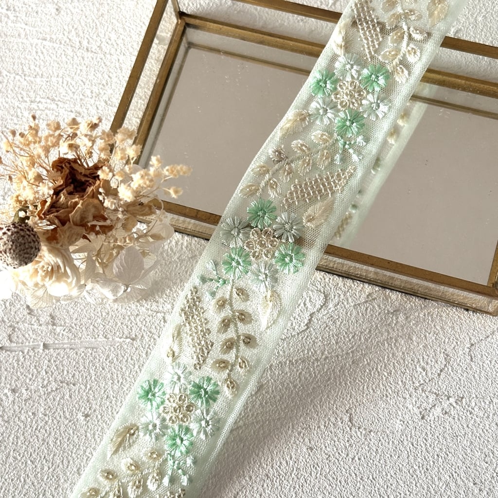 キュートフラワー [エメラルド]インド刺繍リボン 3535