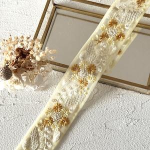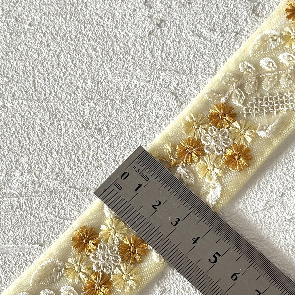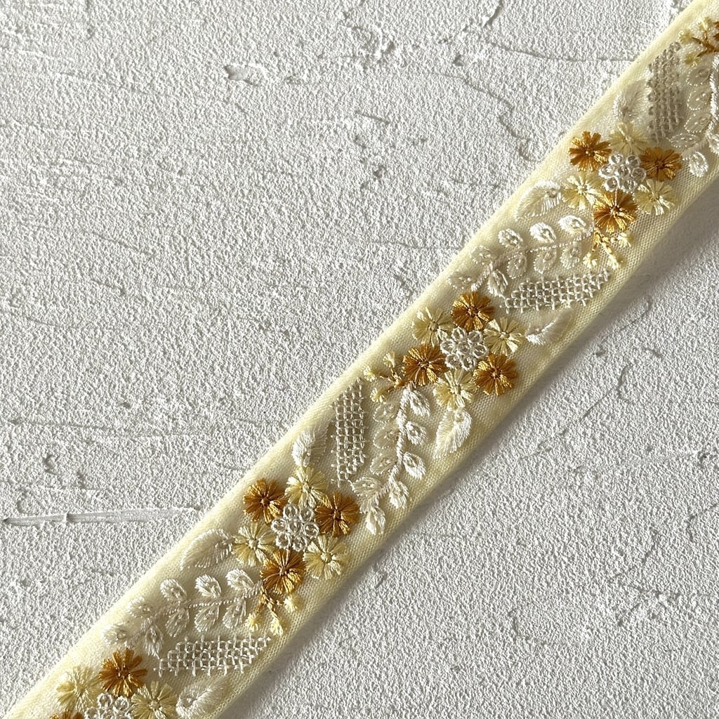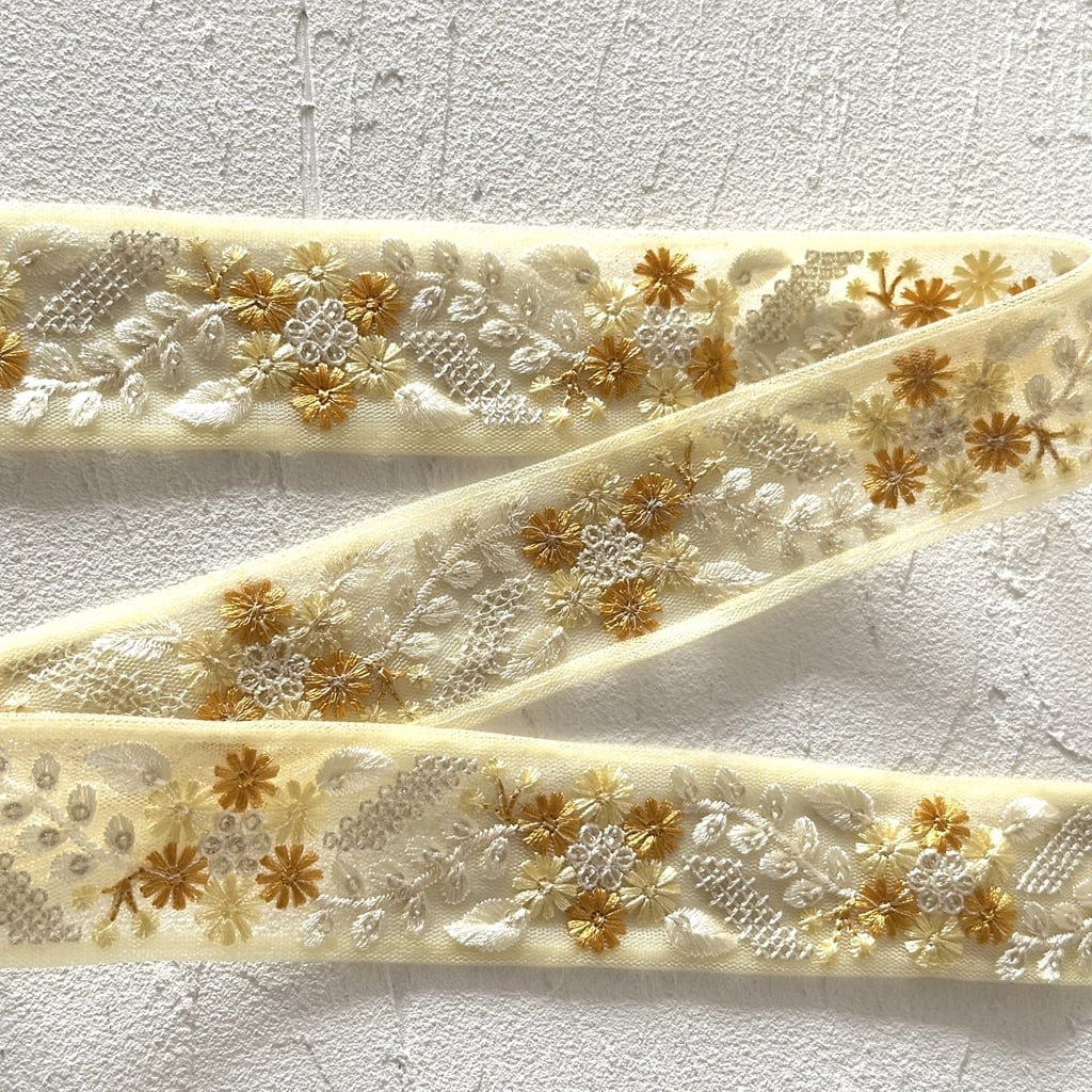 キュートフラワー [イエロー]インド刺繍リボン 3536