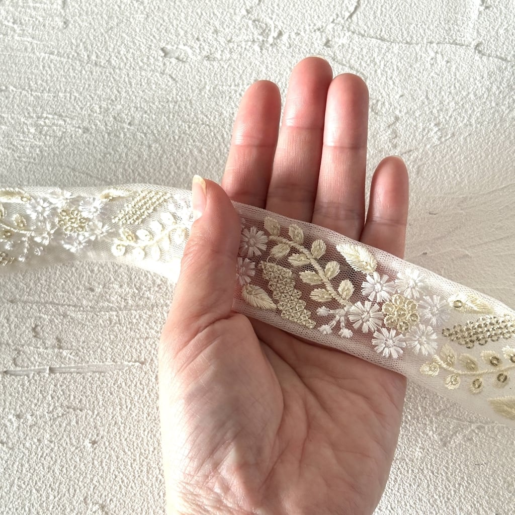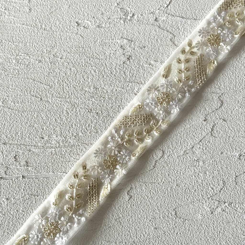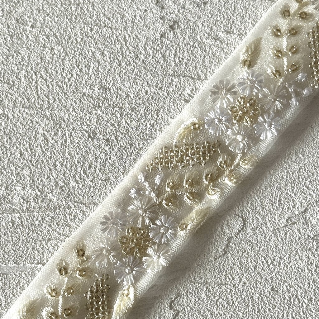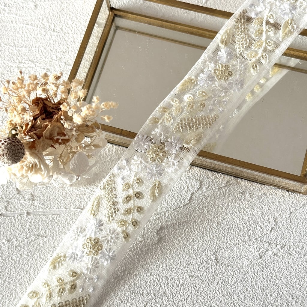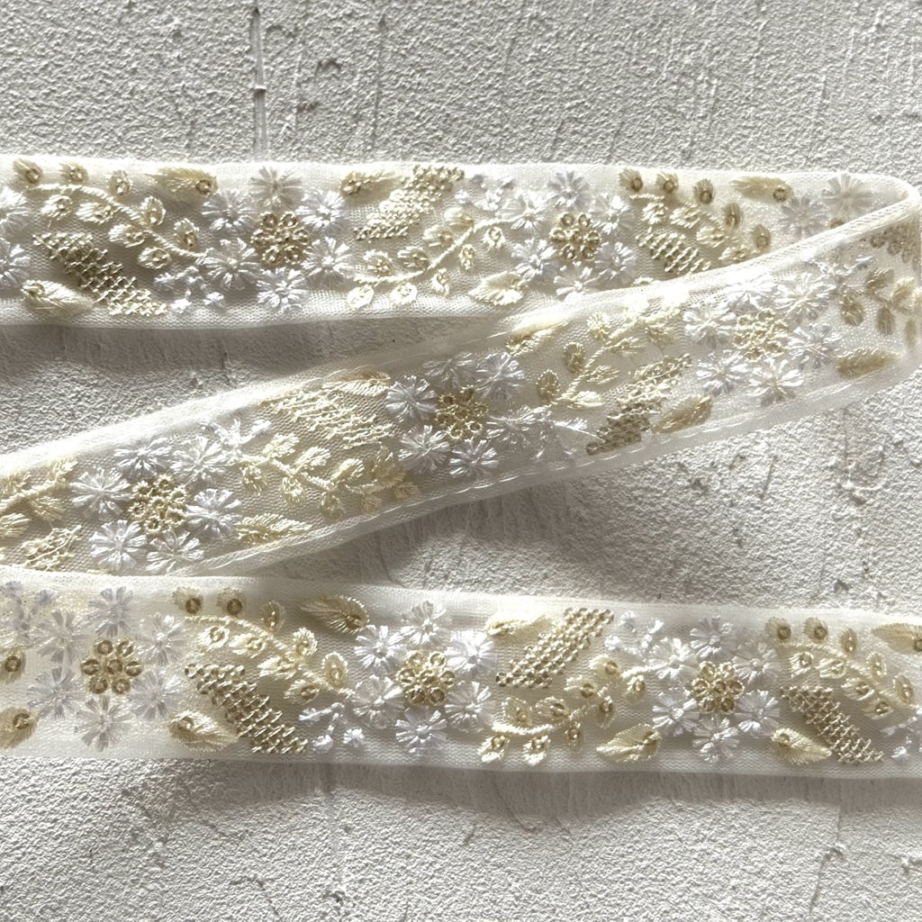 キュートフラワー [ホワイト]インド刺繍リボン 3537