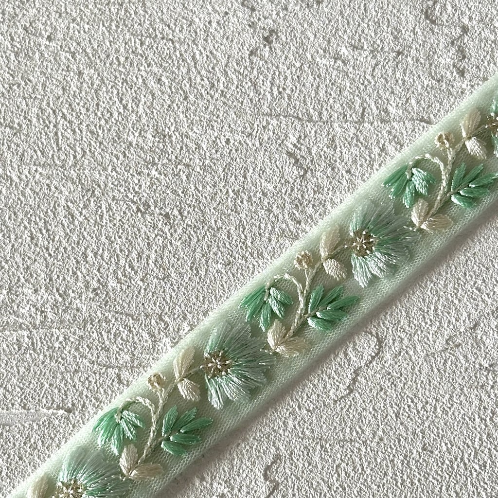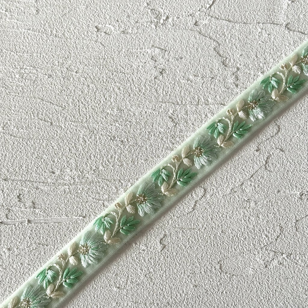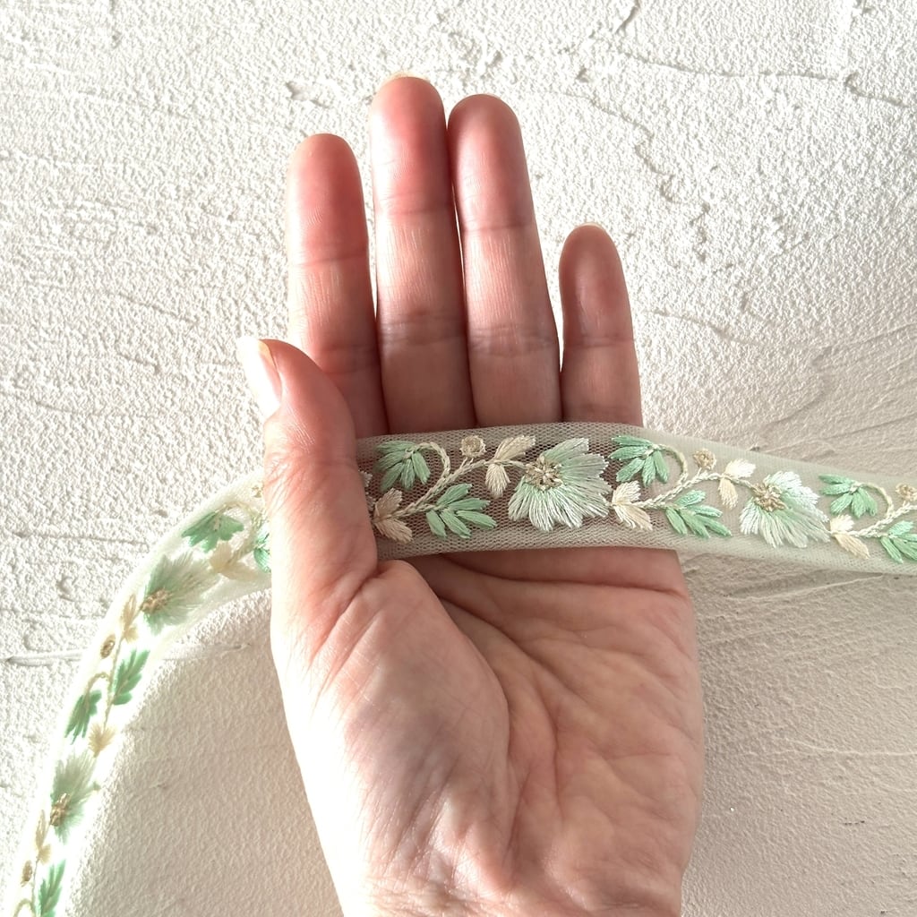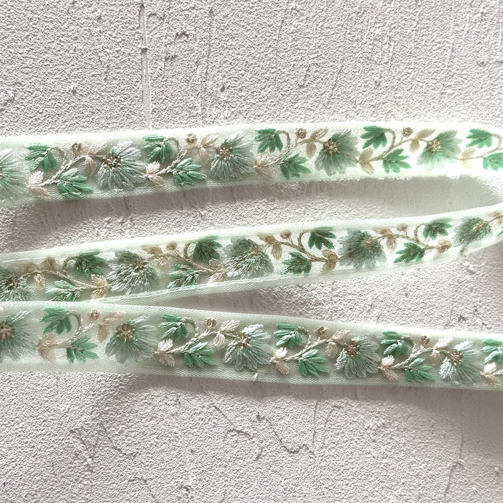 インド刺繍リボンは、細かい刺繍が施されていて色も鮮やかなリボンです。