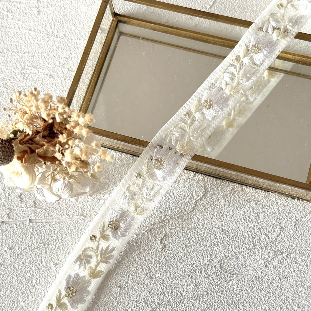 オアシス [ホワイト]インド刺繍リボン 3550