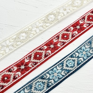 インド刺繍リボンは、細かい刺繍が施されていて色も鮮やかなリボンです。