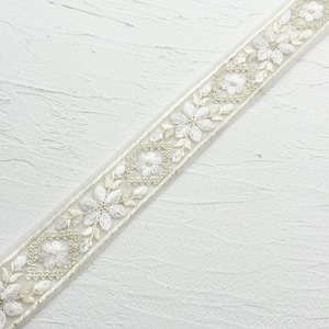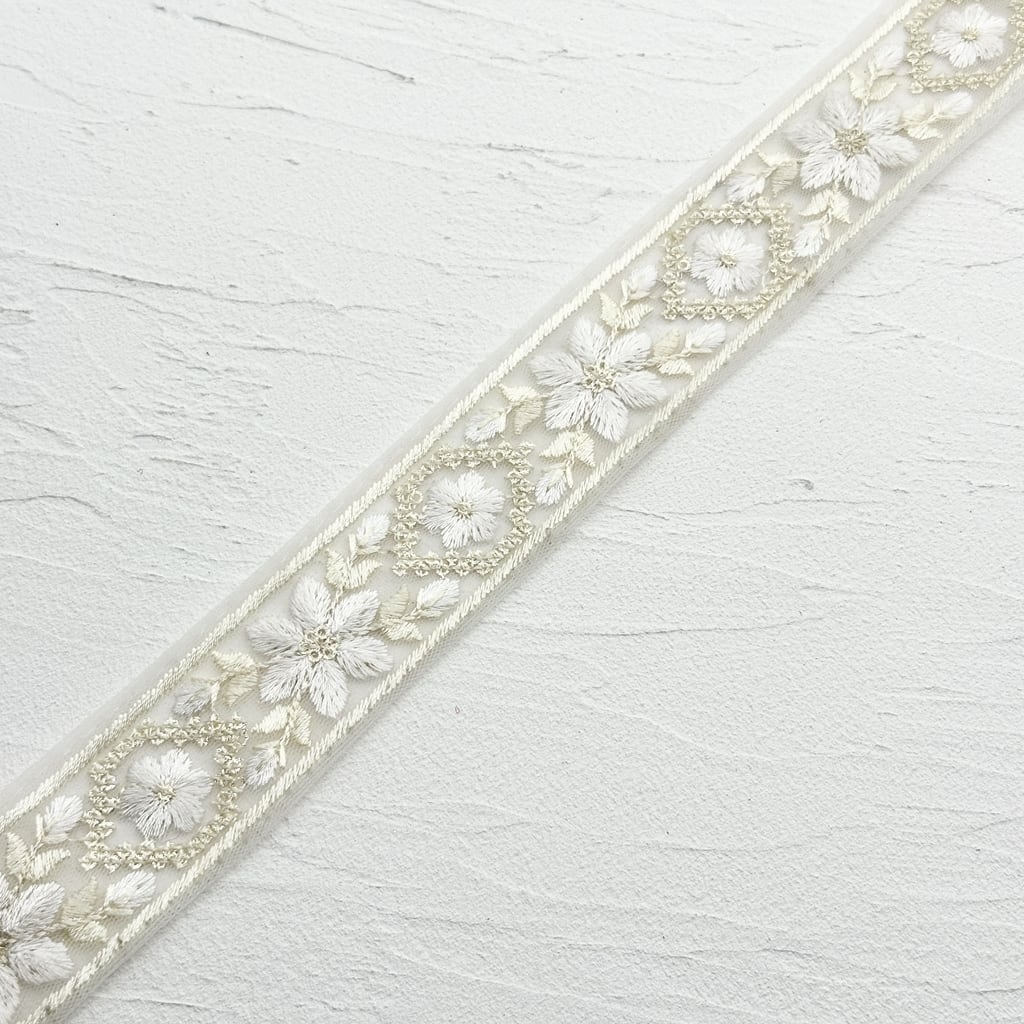 1ロール パステルフローラル [ホワイト] インド刺繍リボン 1825-1R