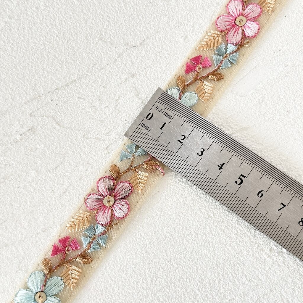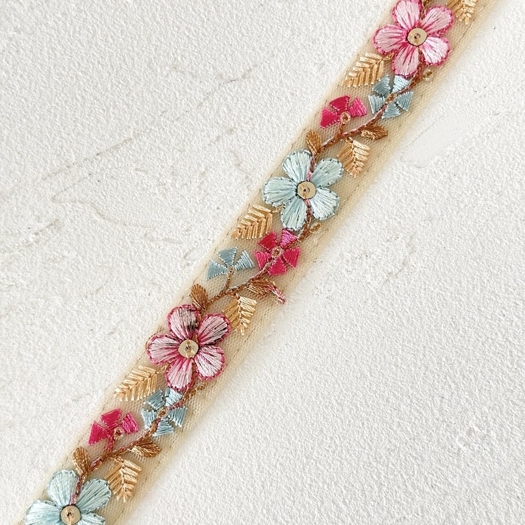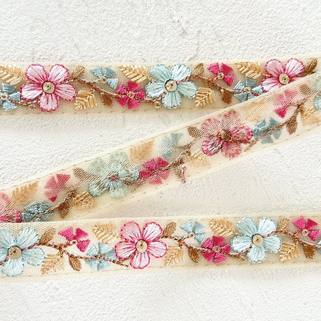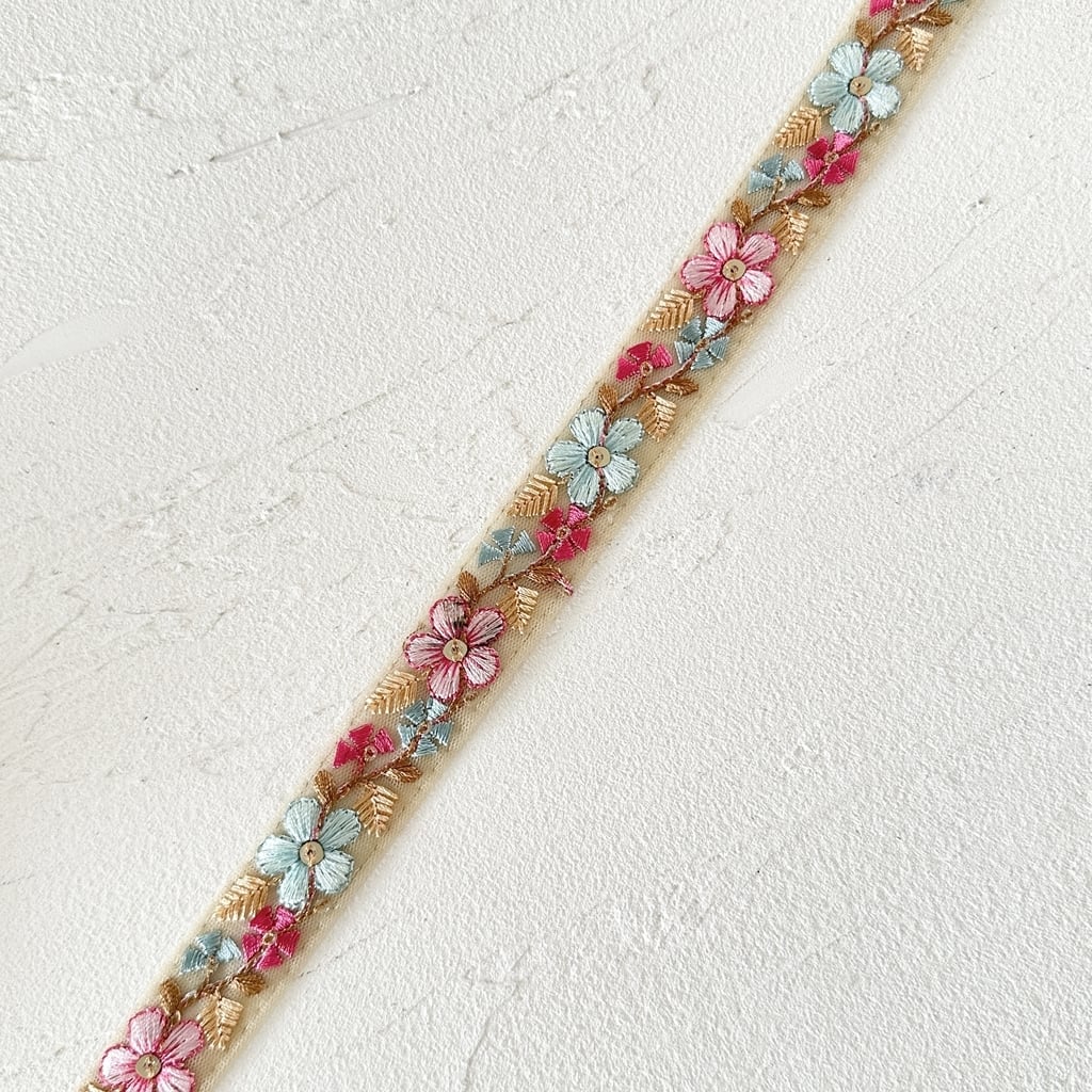 1ロール プチフルール [ピンクサックス] インド刺繍リボン 3309-1R