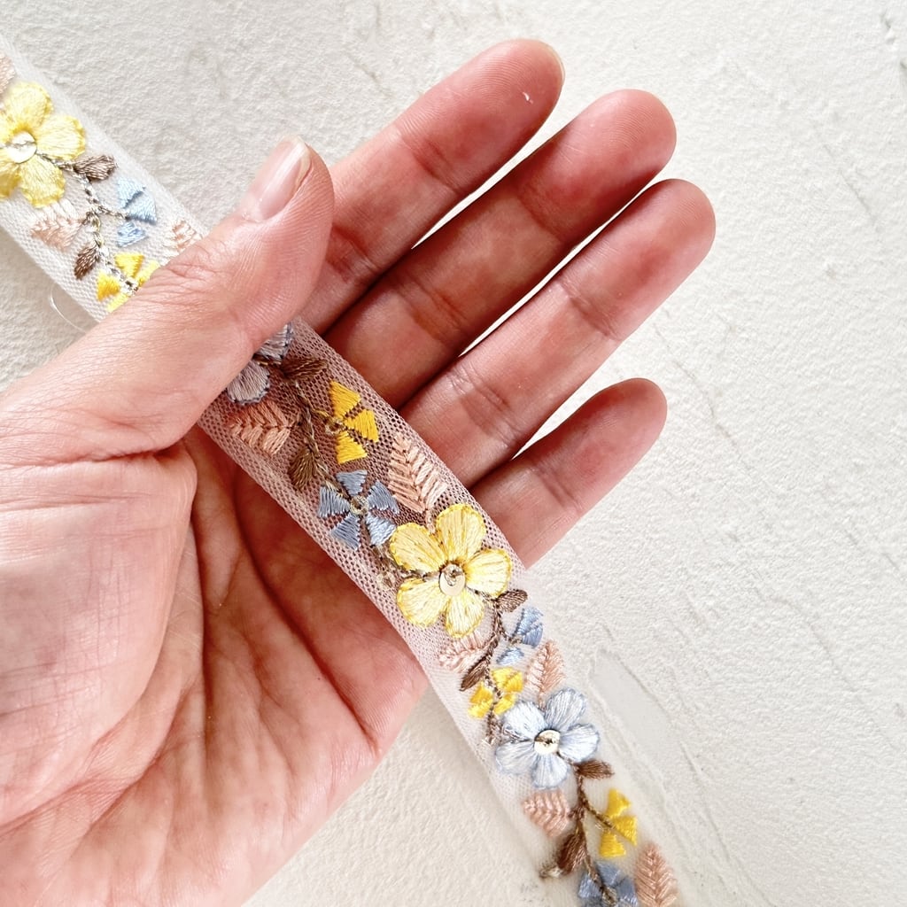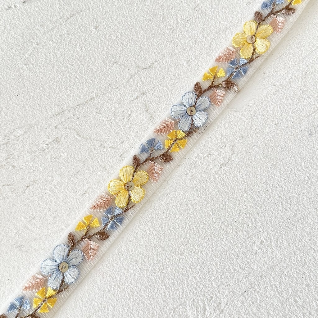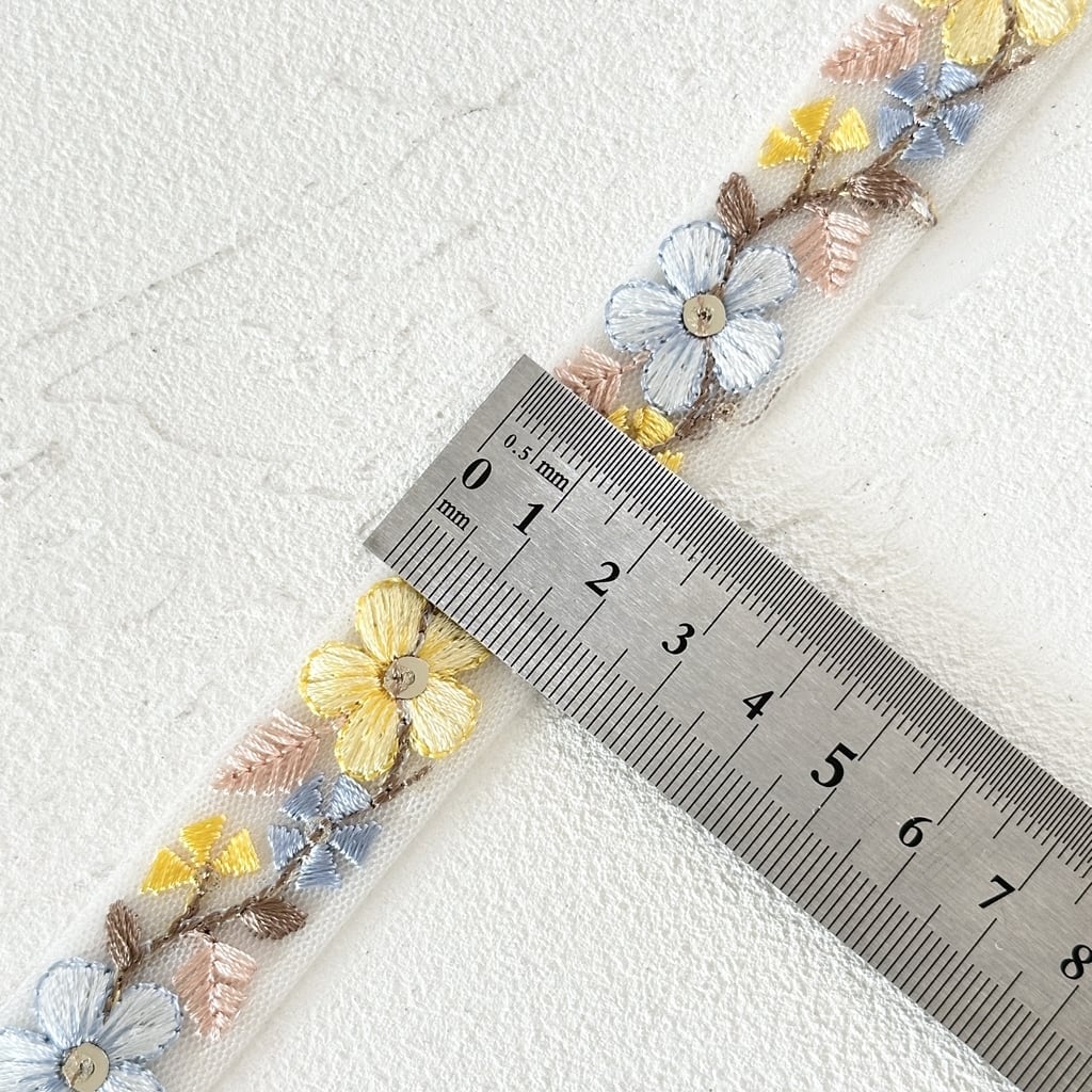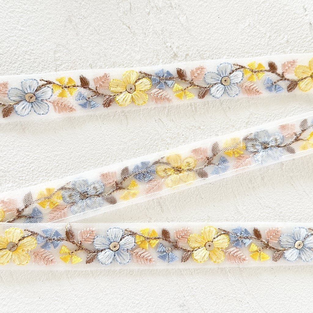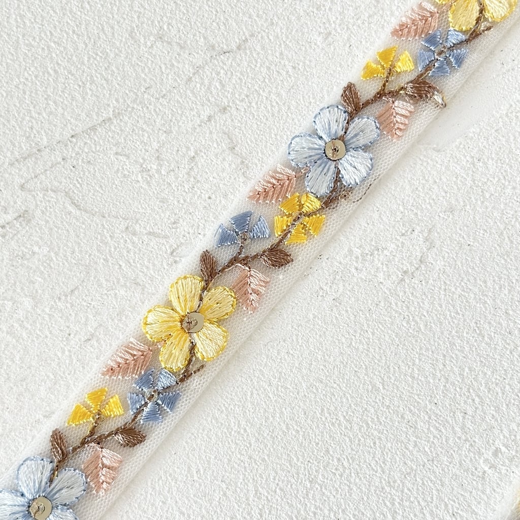 1ロール プチフルール [イエローサックス] インド刺繍リボン 3307-1R