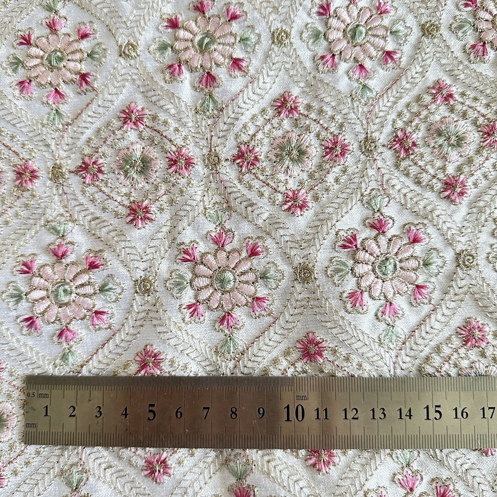 インド刺繍生地 ホワイト【48cm】 7137