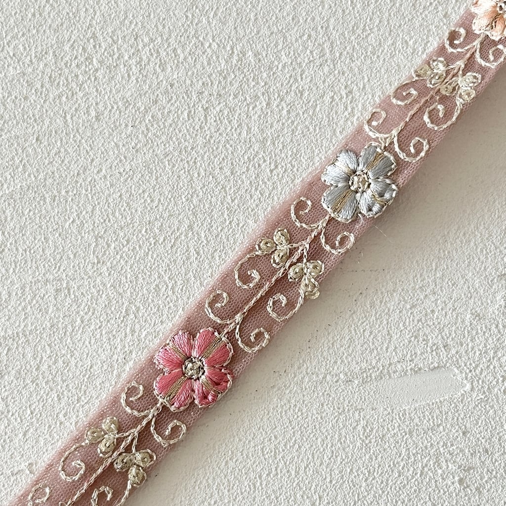 インド刺繍リボンは、細かい刺繍が施されていて色も鮮やかなリボンです。