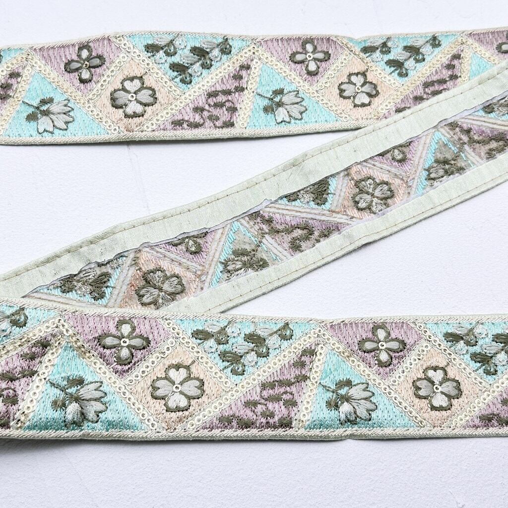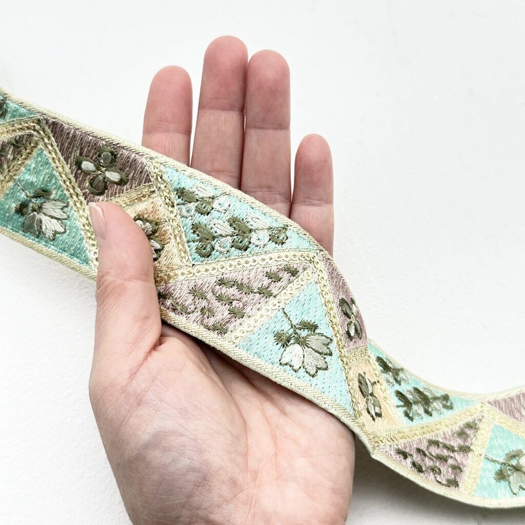 1ロール スプリングハーモニー[ピスタチオ]インド刺繍リボン 1446-1R