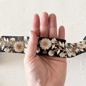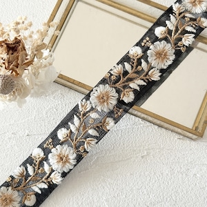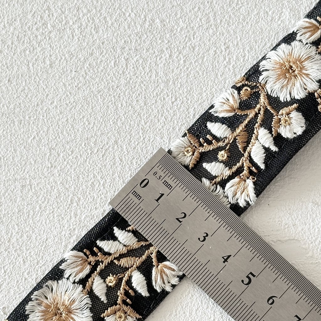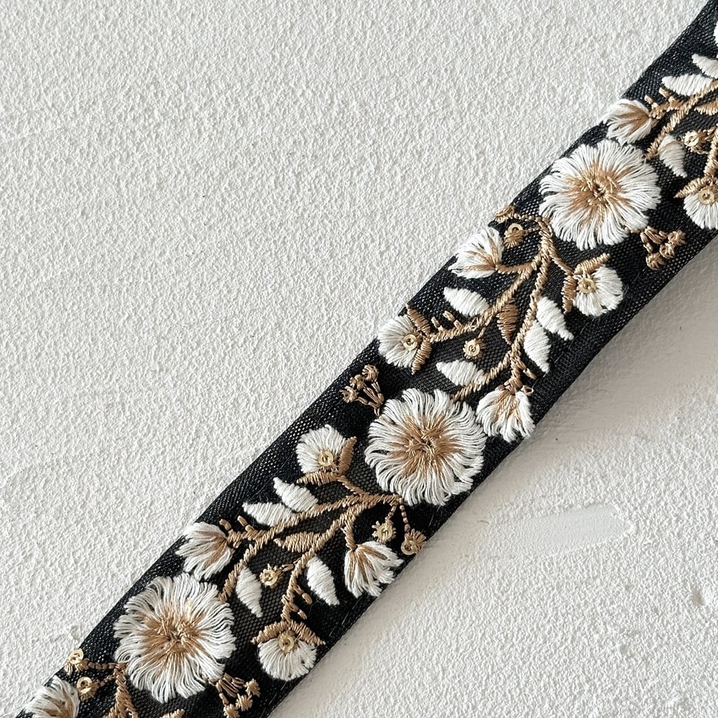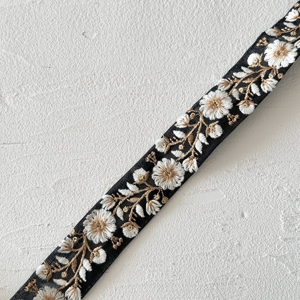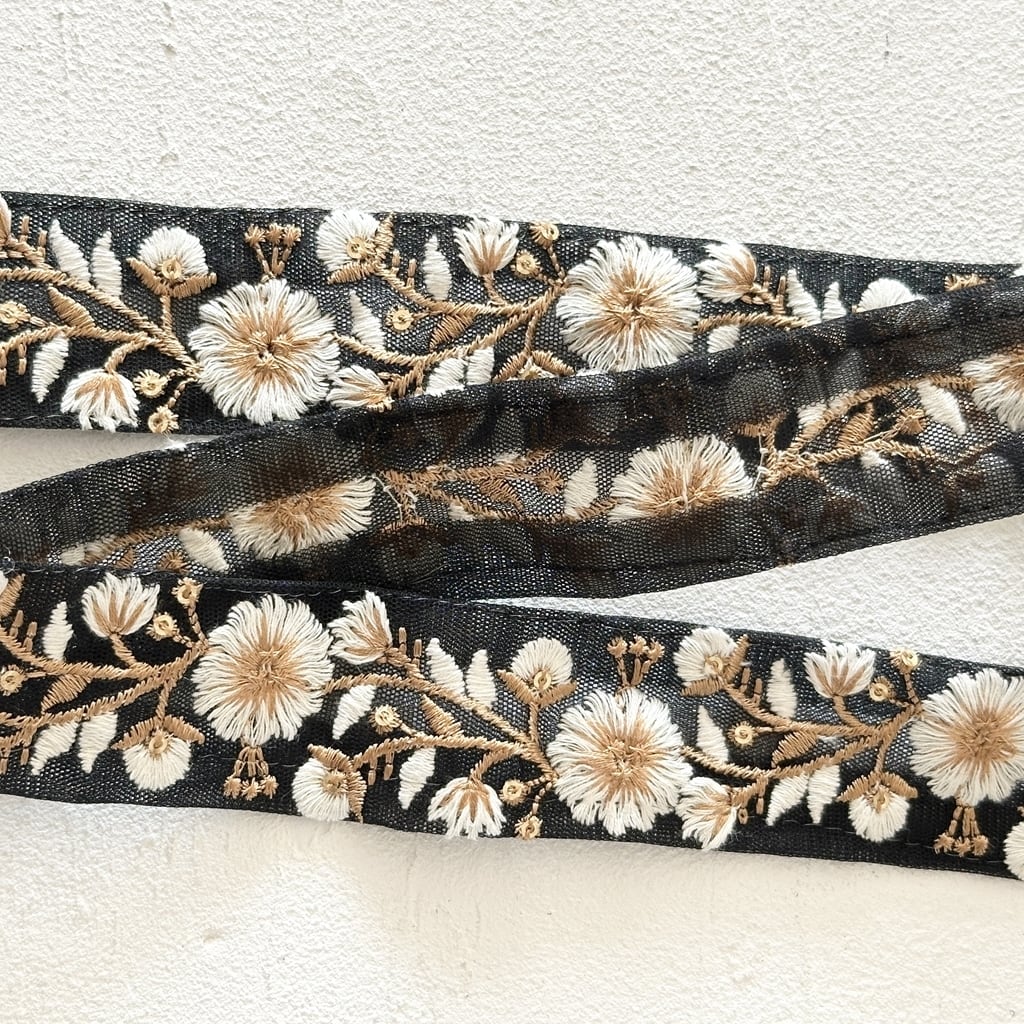 1ロール フローレス [ブラック] インド刺繍リボン 3373-1R