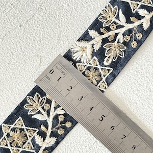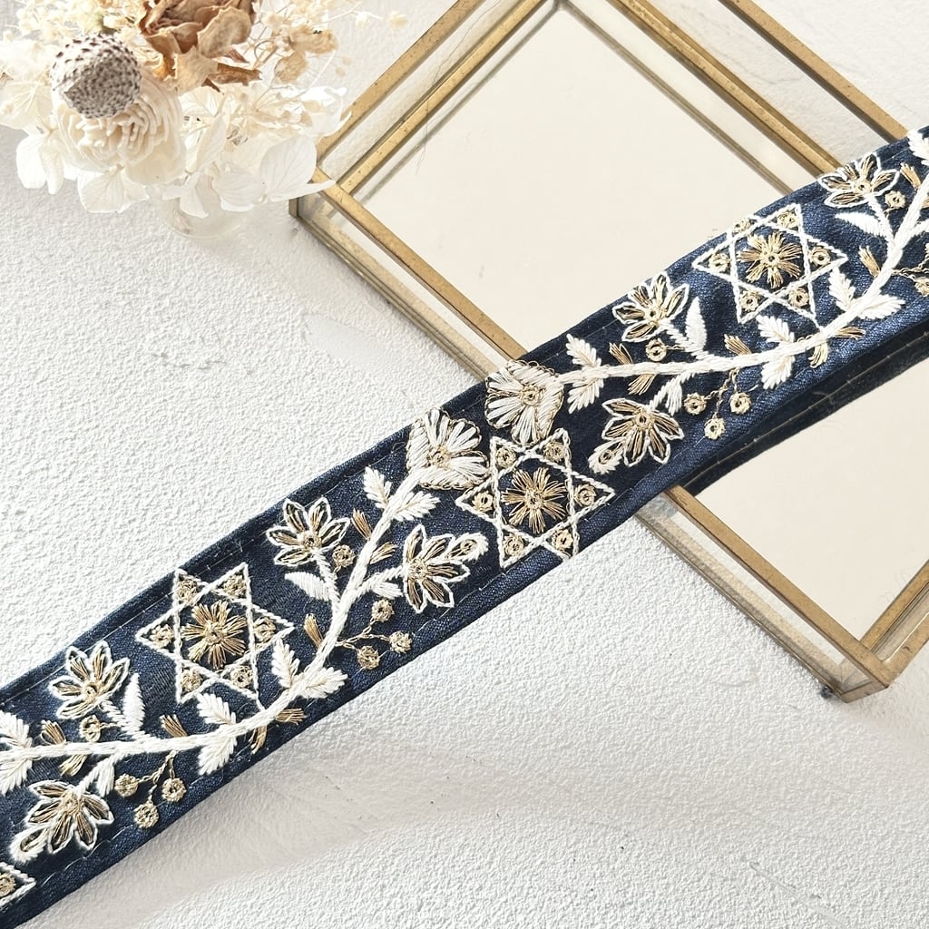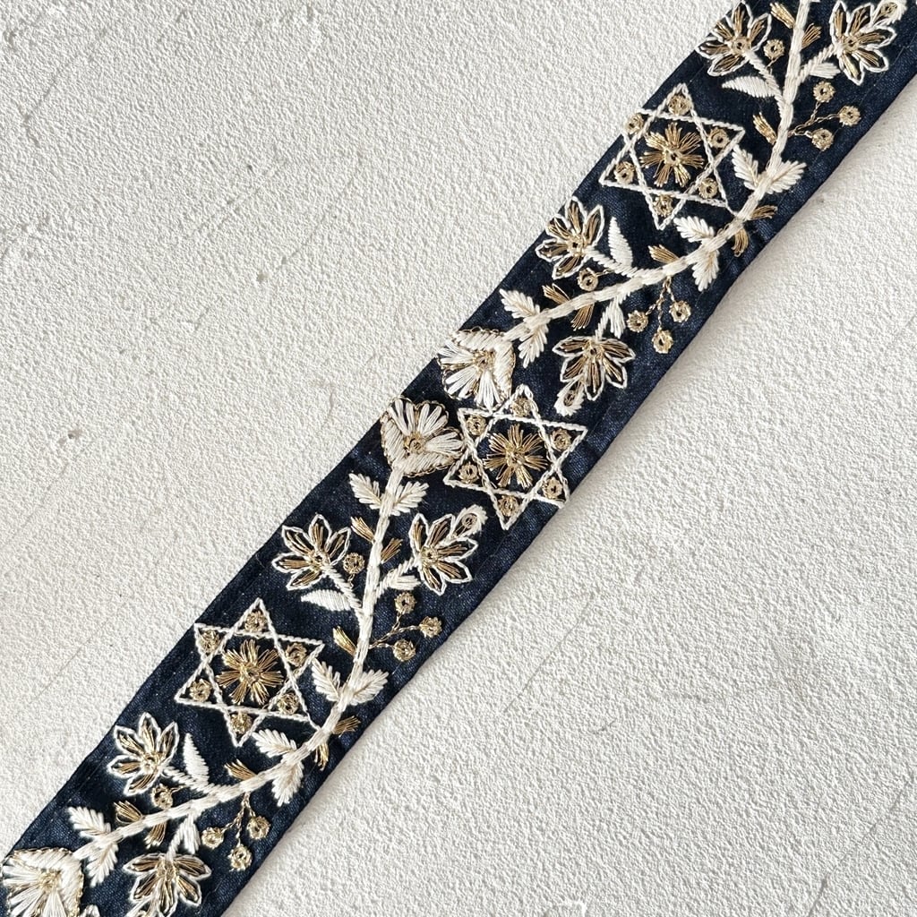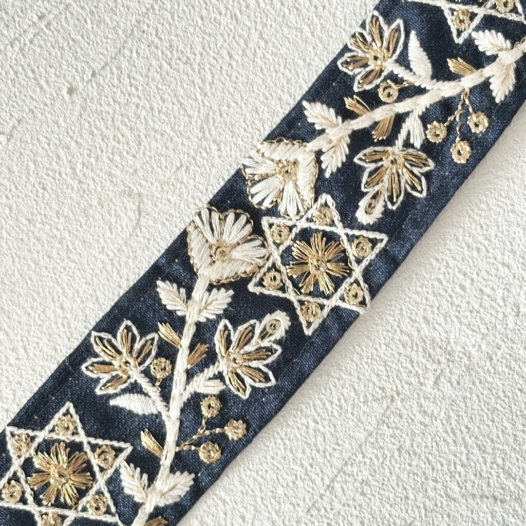 1ロール スター [ネイビー] インド刺繍リボン 3410-1R