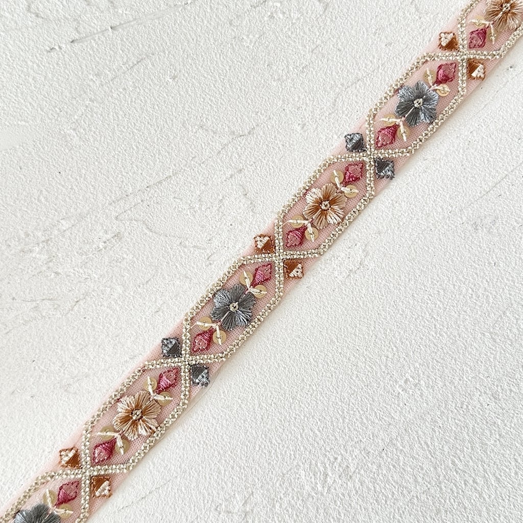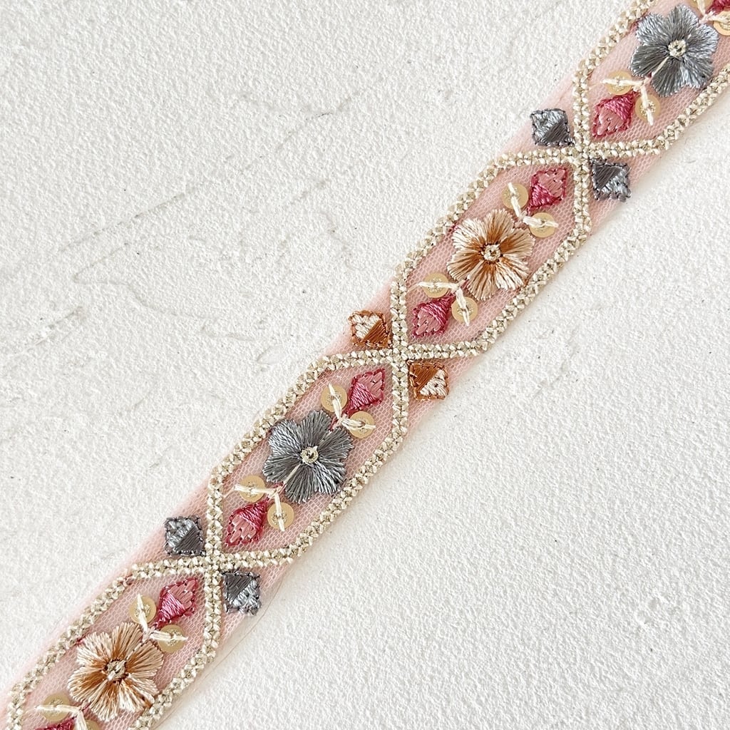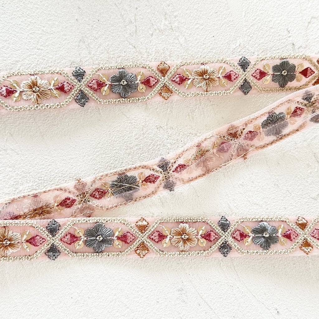 1ロール パステルシャイン [ピンク] インド刺繍リボン 3314-1R