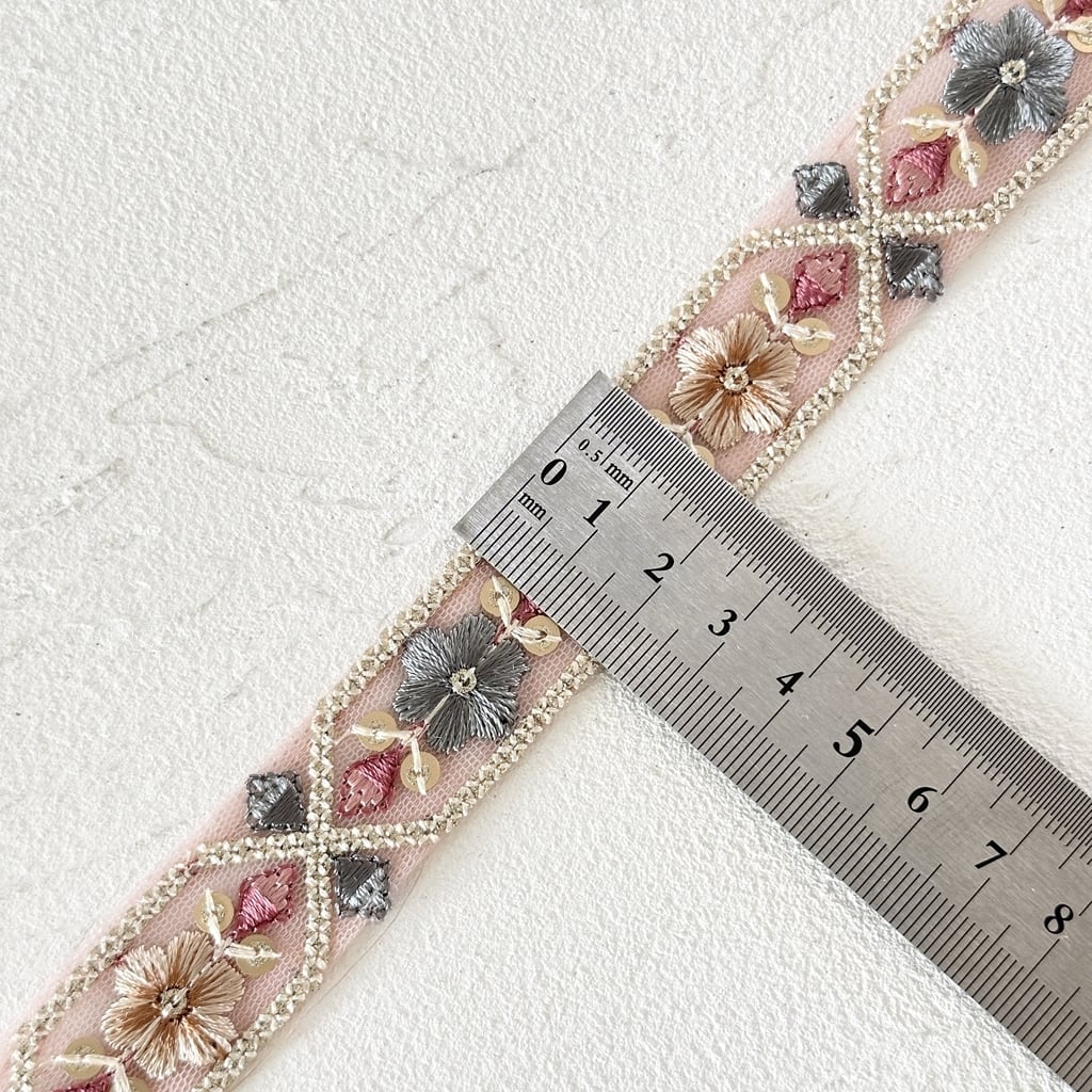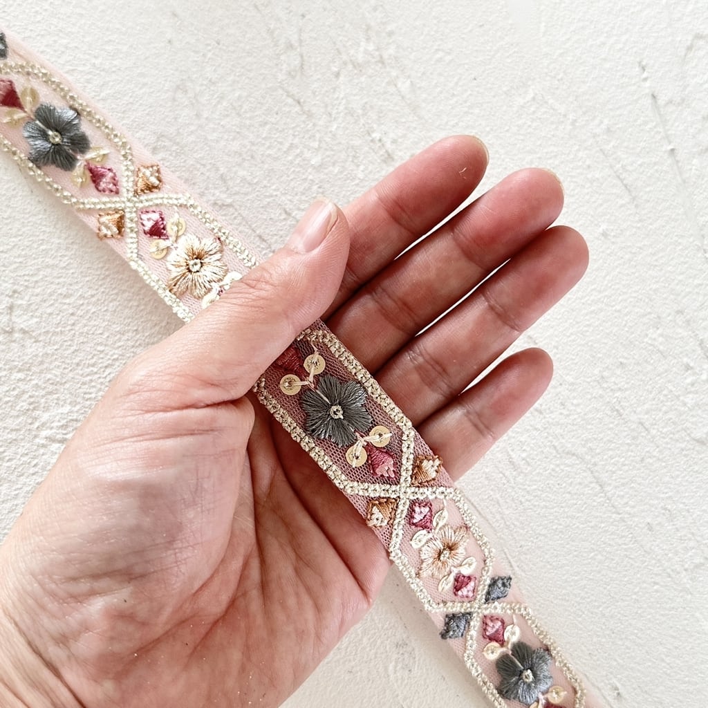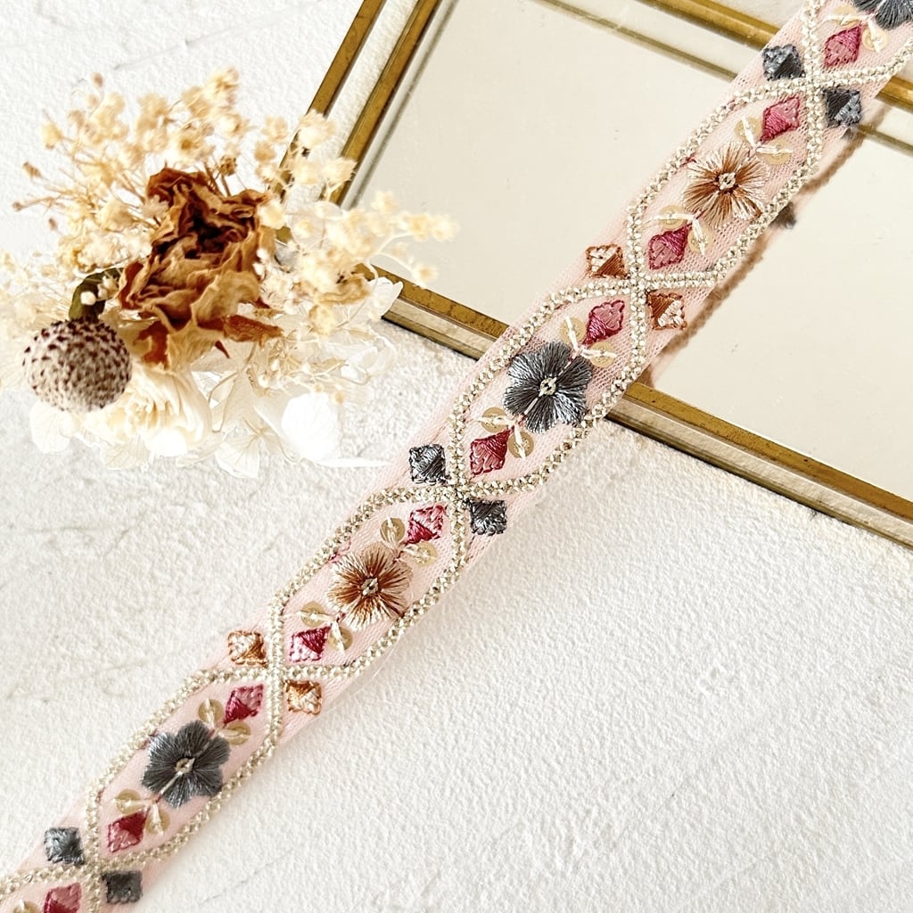 1ロール パステルシャイン [ピンク] インド刺繍リボン 3314-1R