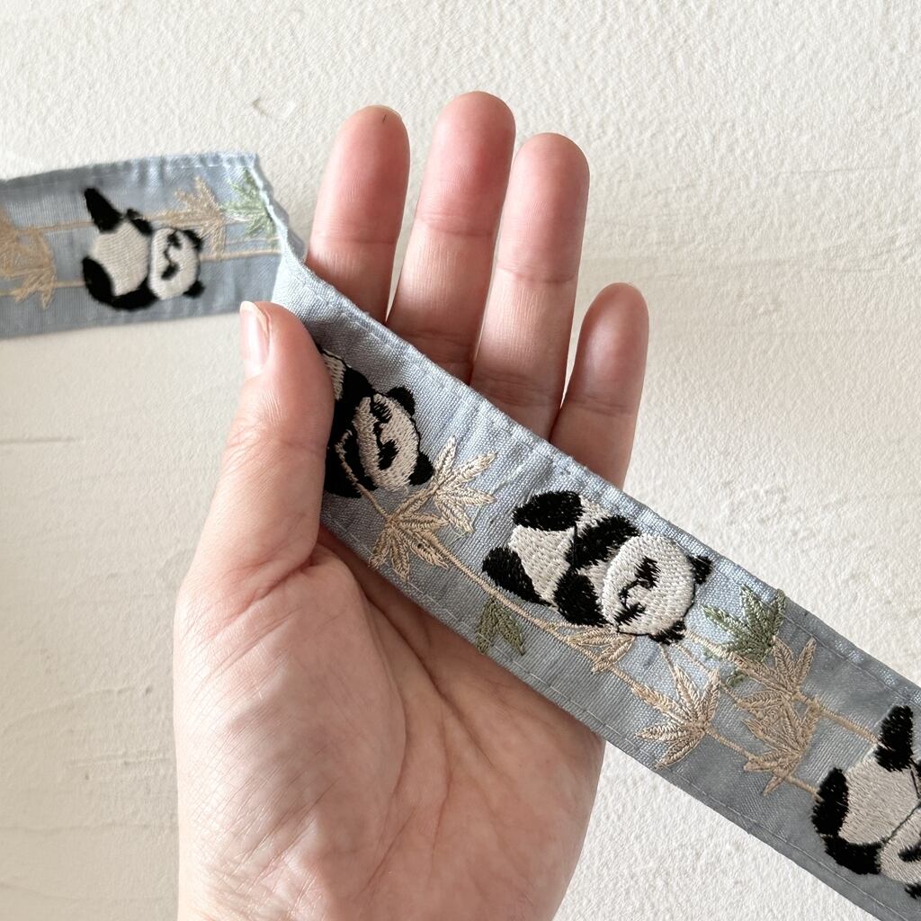 1ロール パンダ [布サックス] インド刺繍リボン 3365-1R