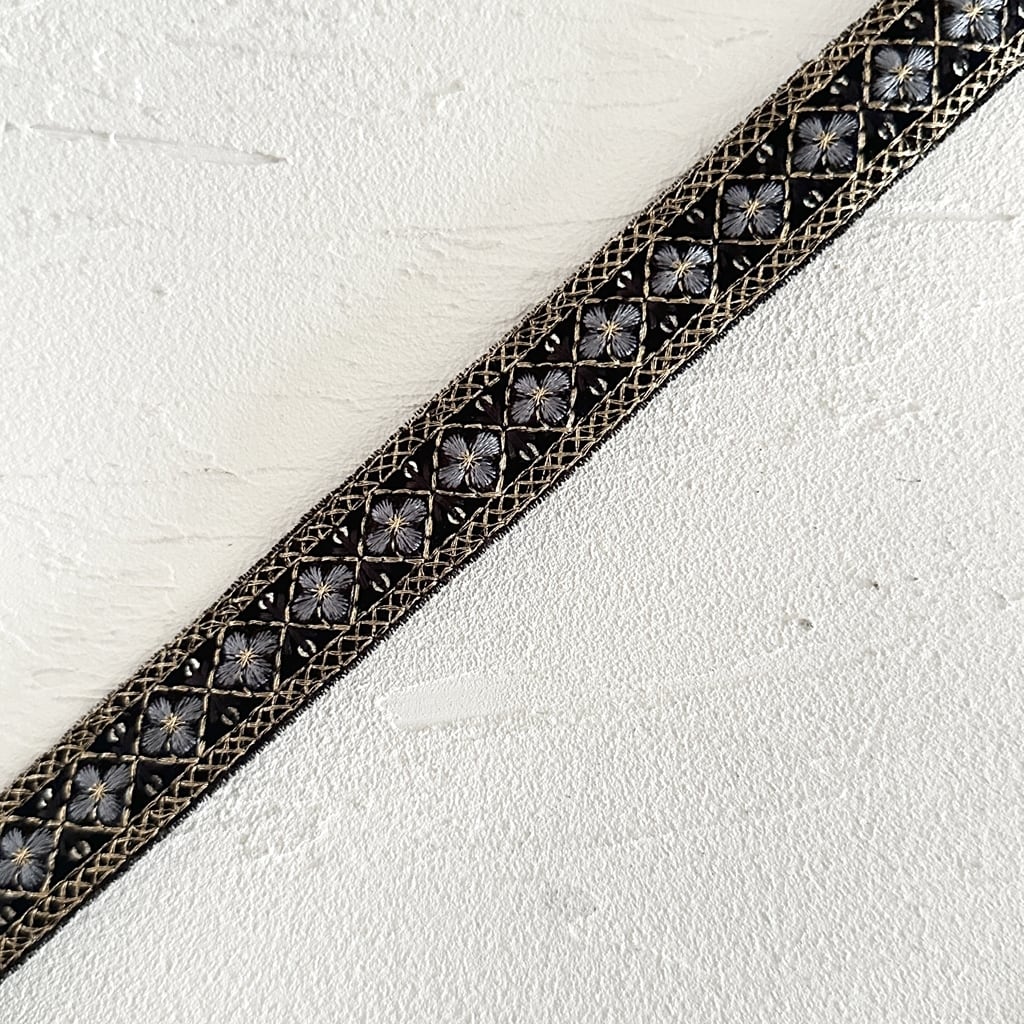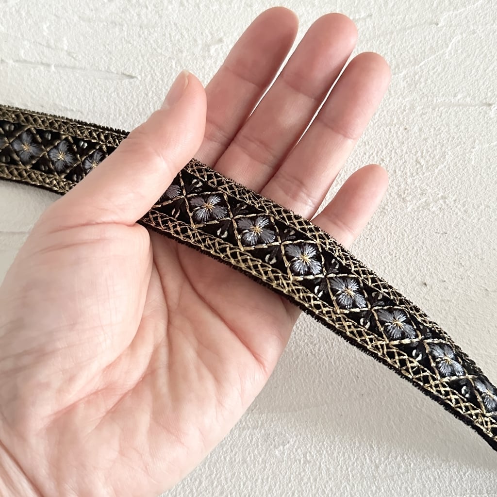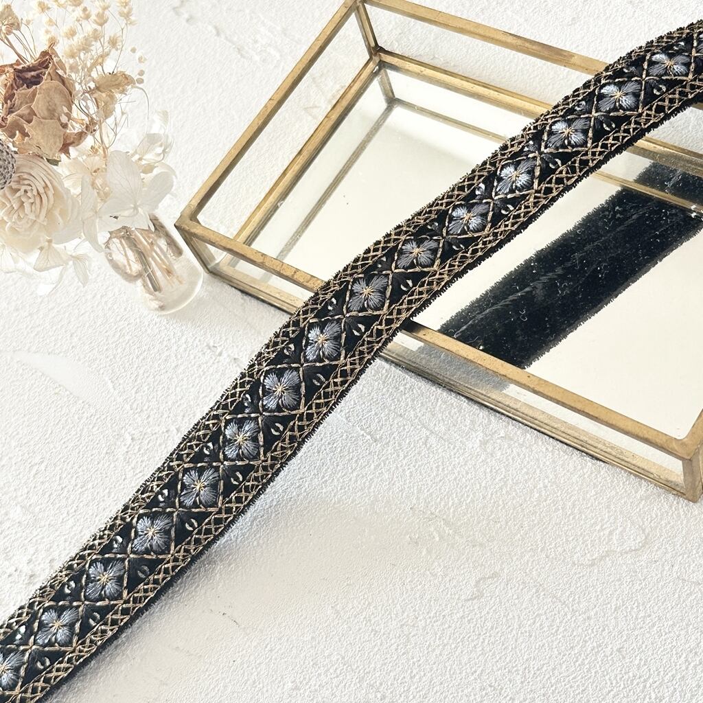モザイクミニ[ベルベットブラック]インド刺繍リボン 3568