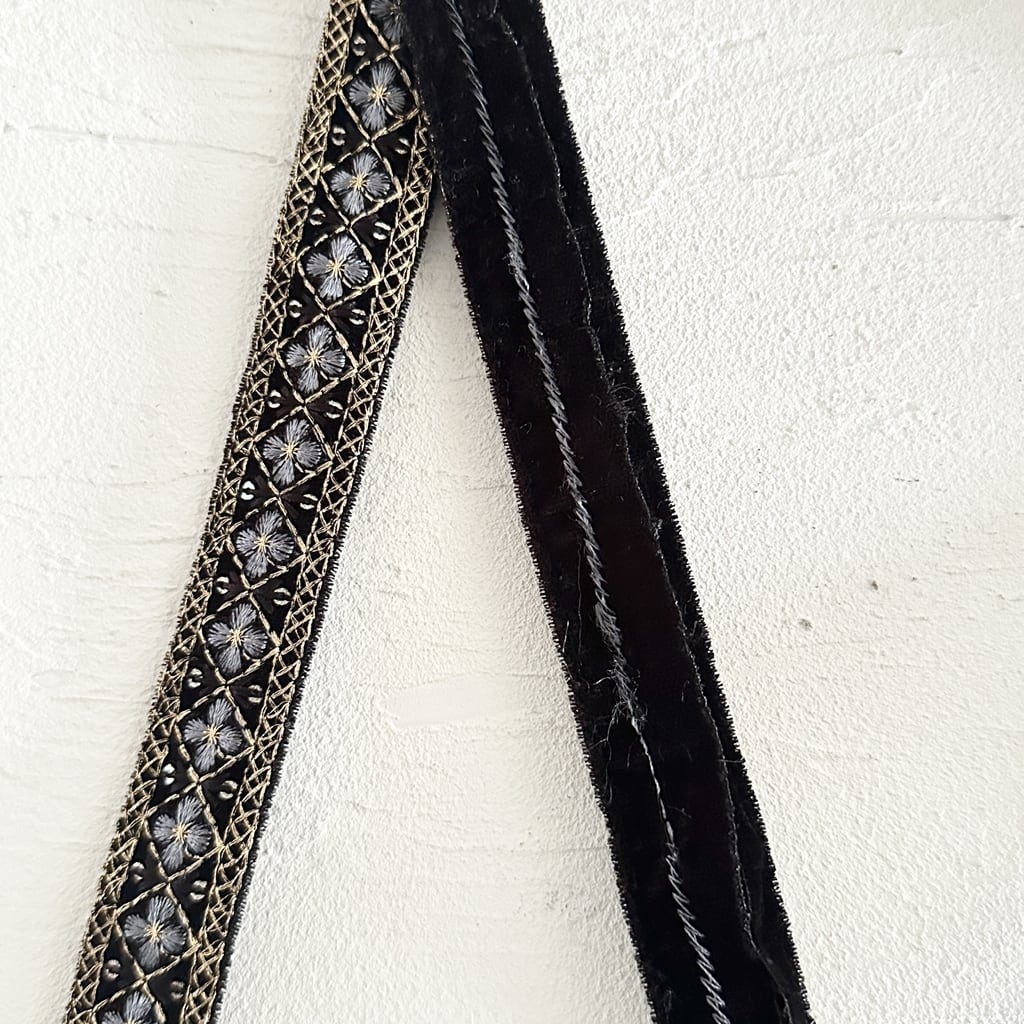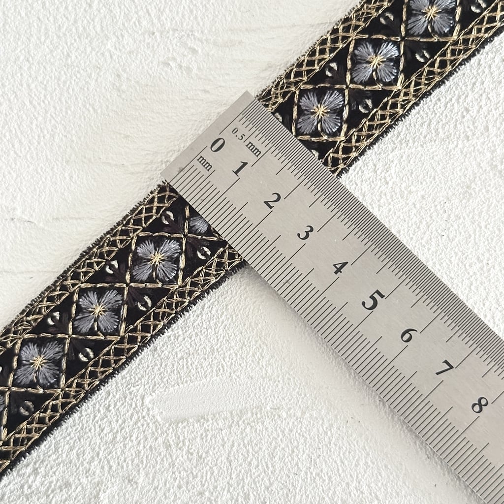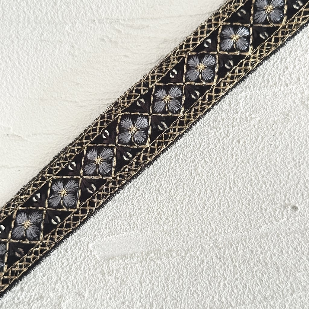 モザイクミニ[ベルベットブラック]インド刺繍リボン 3568
