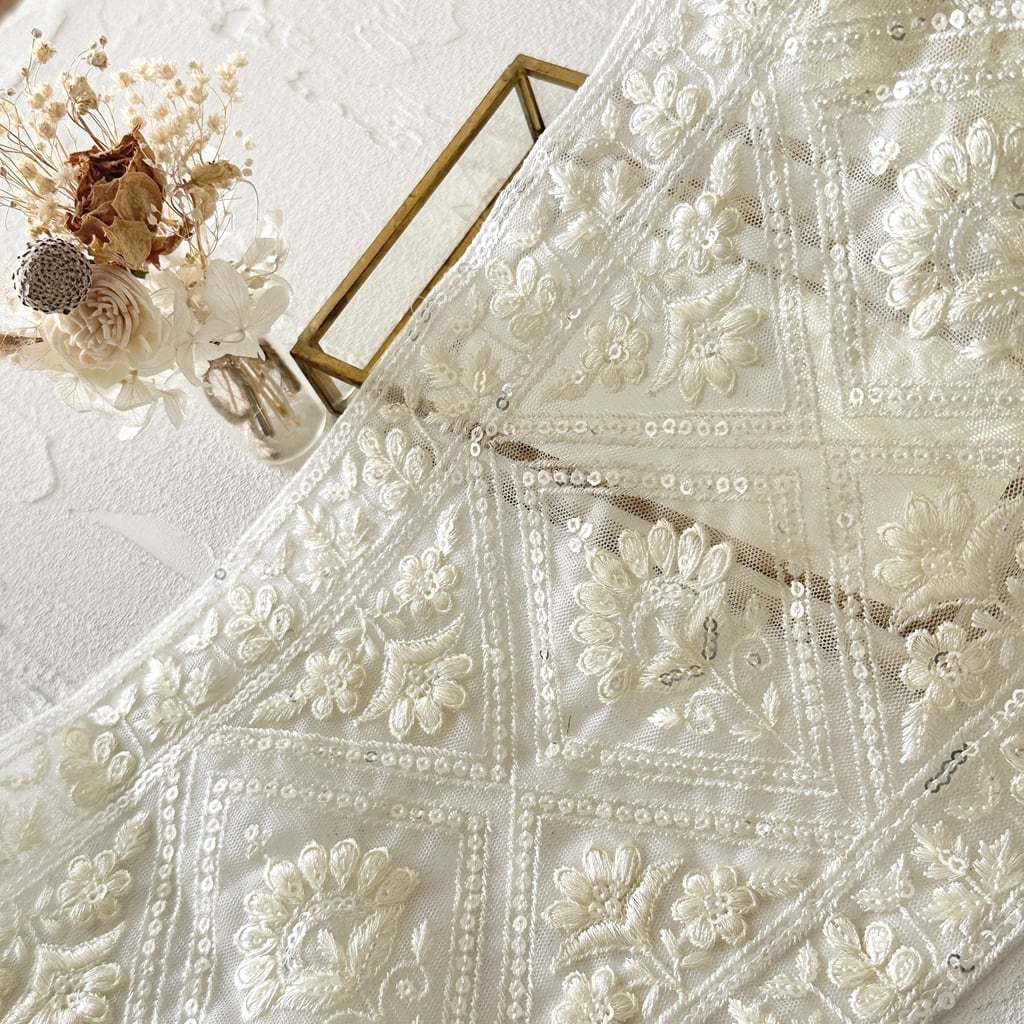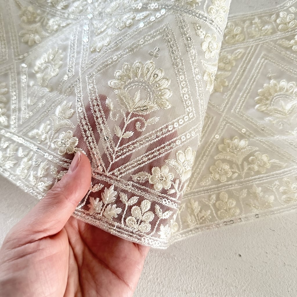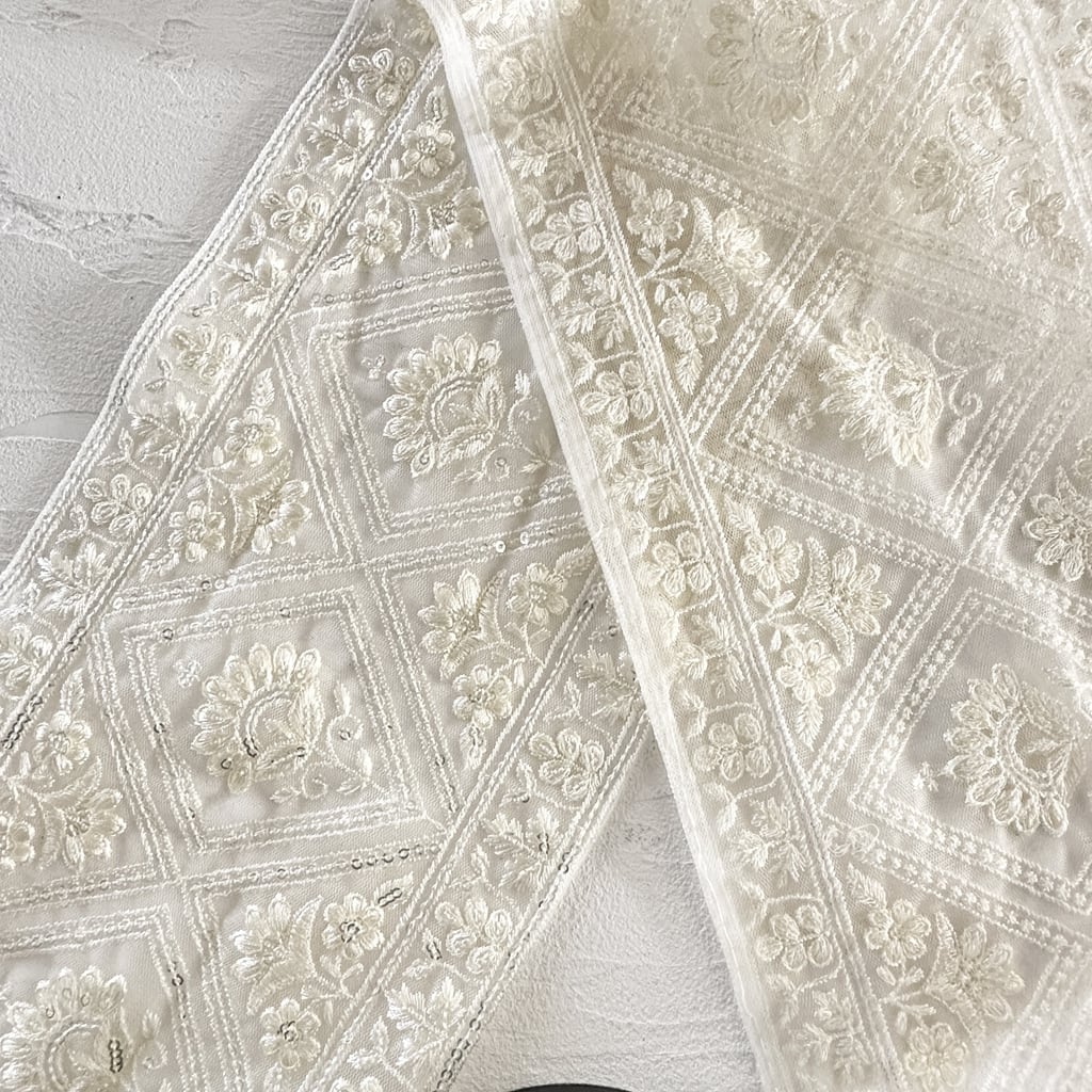 ワイド [アイボリー]インド刺繍リボン 3570