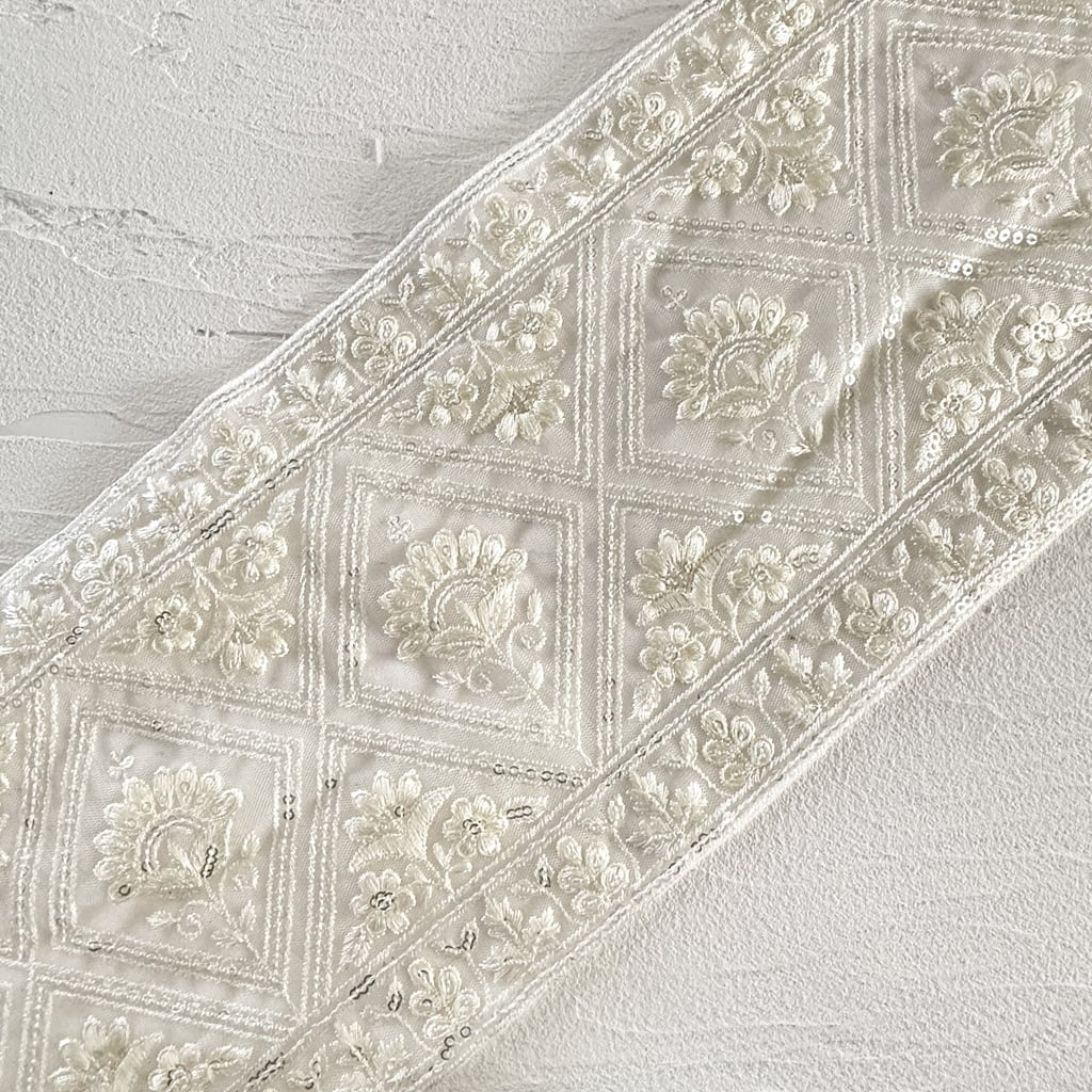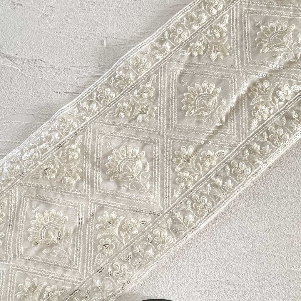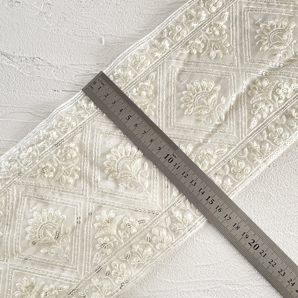 ワイド [アイボリー]インド刺繍リボン 3570