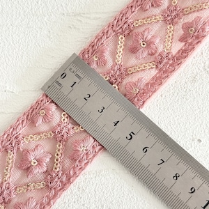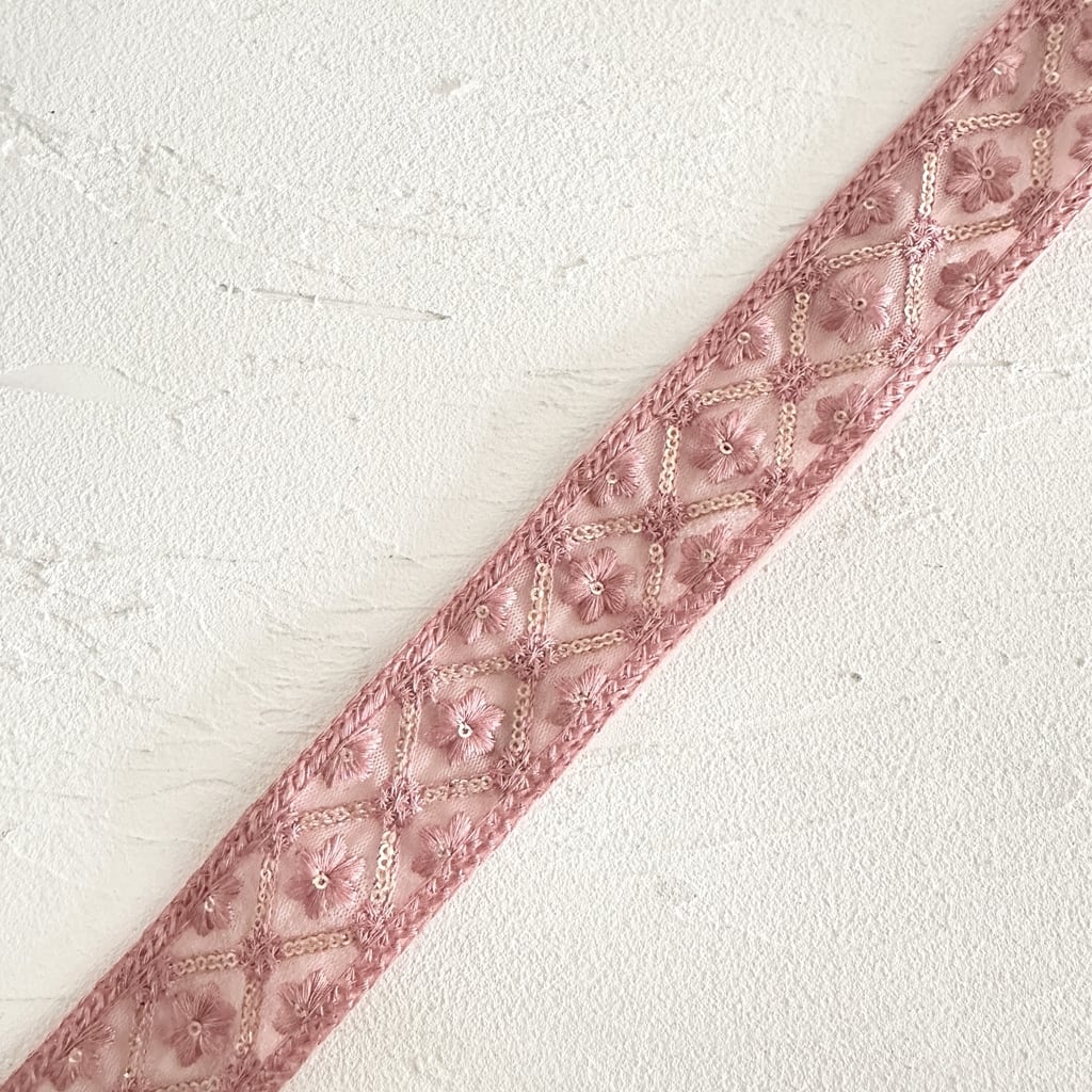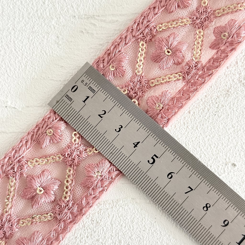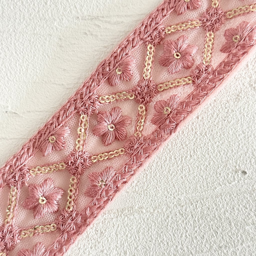 マジックアイリス [ピンクレッド]インド刺繍リボン 3575