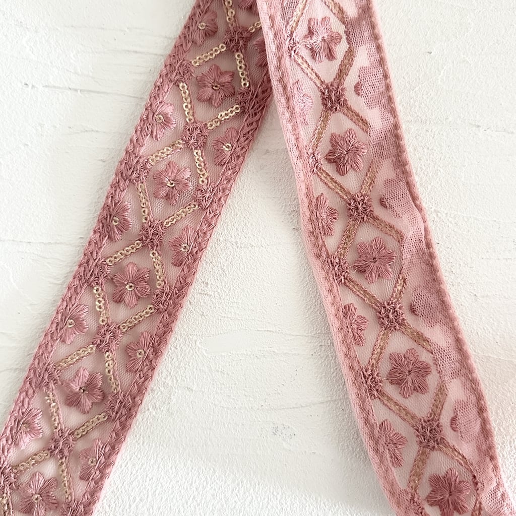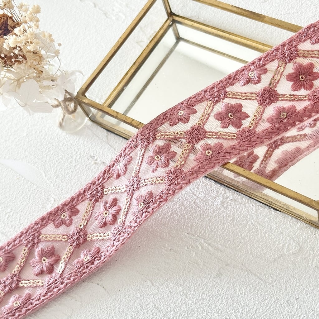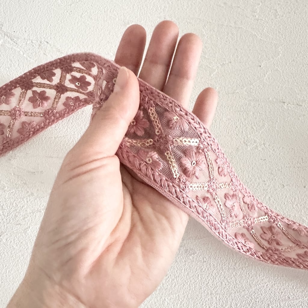 インド刺繍リボンは、細かい刺繍が施されていて色も鮮やかなリボンです。