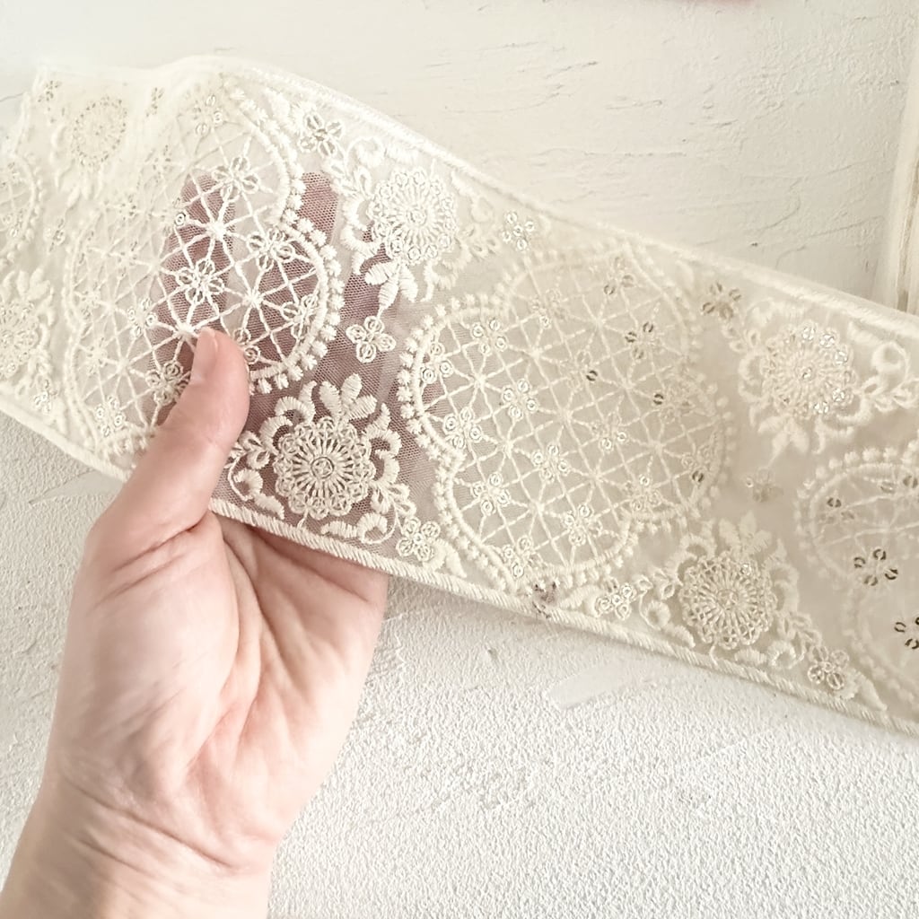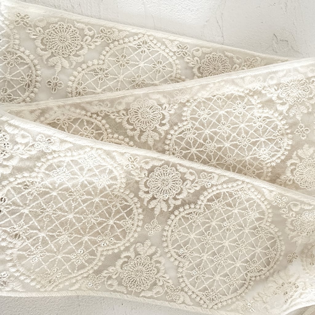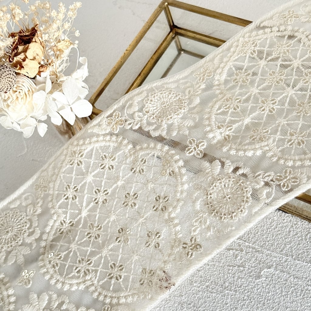 スウィートシャーベット [アイボリー]インド刺繍リボン 3614