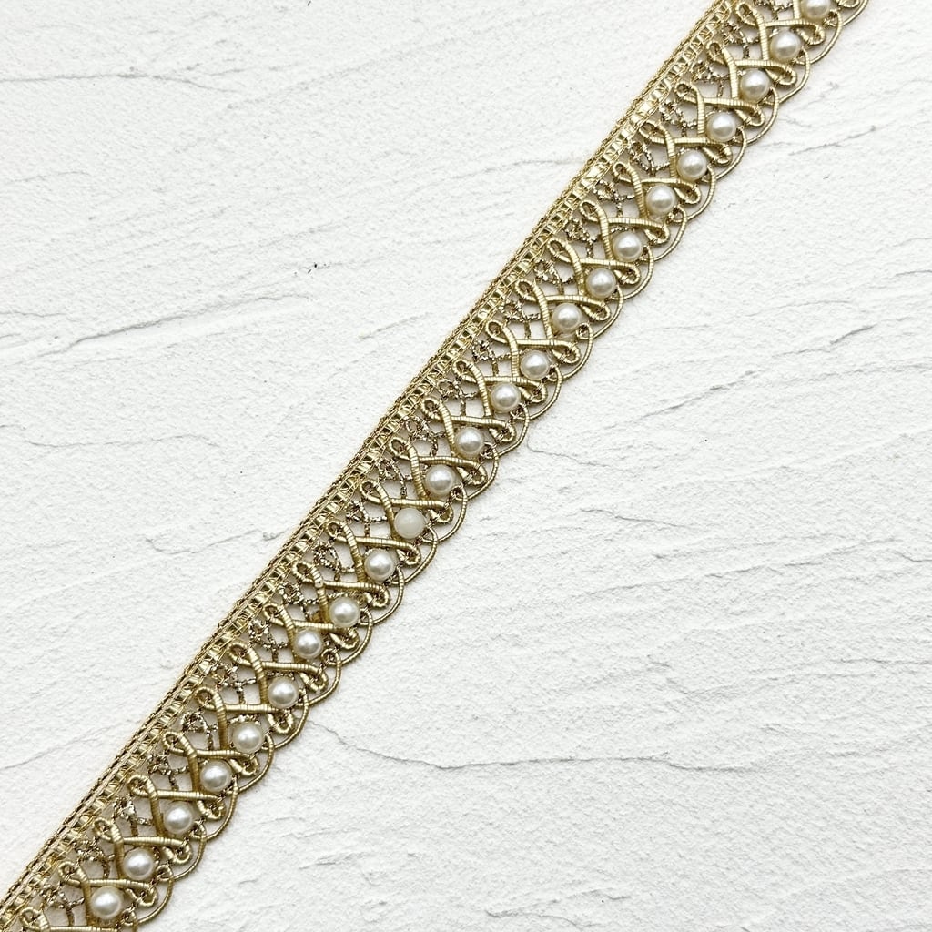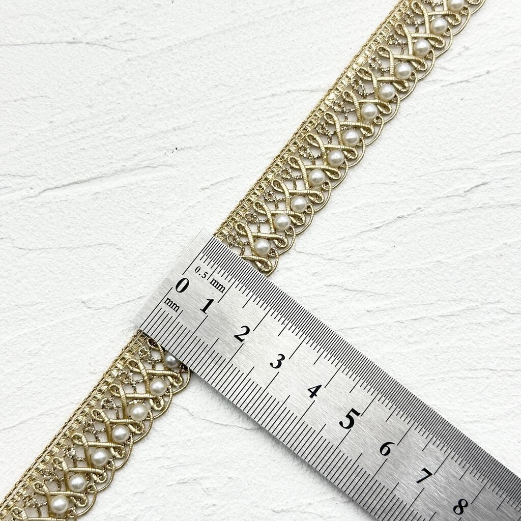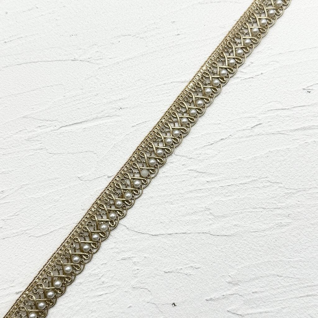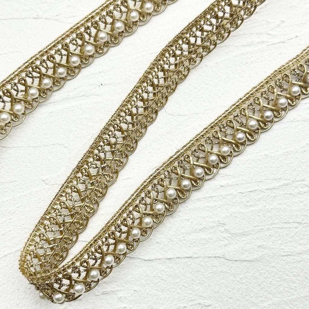 1ロール ブレード Nタイプ [ゴールド]インド刺繍リボン ※パールの取れの可能性あり 9049-1R