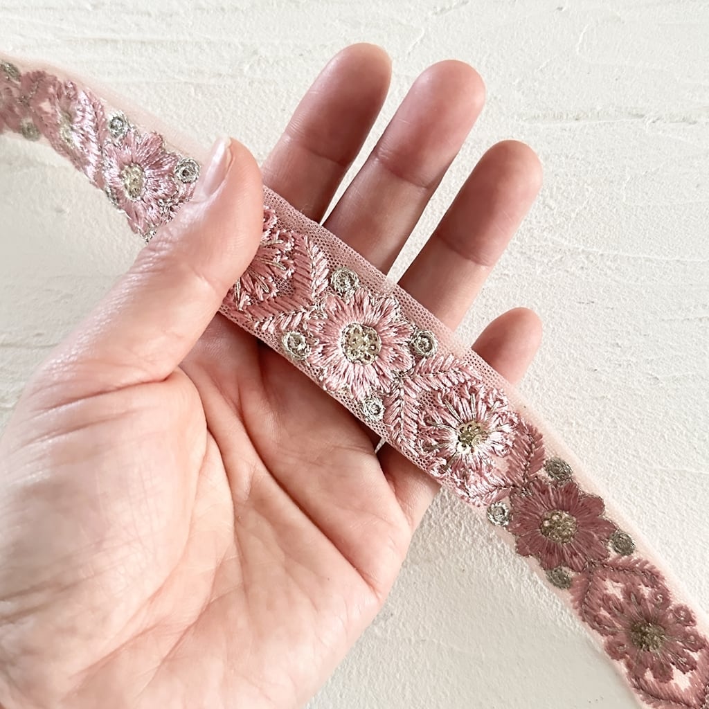 インド刺繍リボンは、細かい刺繍が施されていて色も鮮やかなリボンです。
