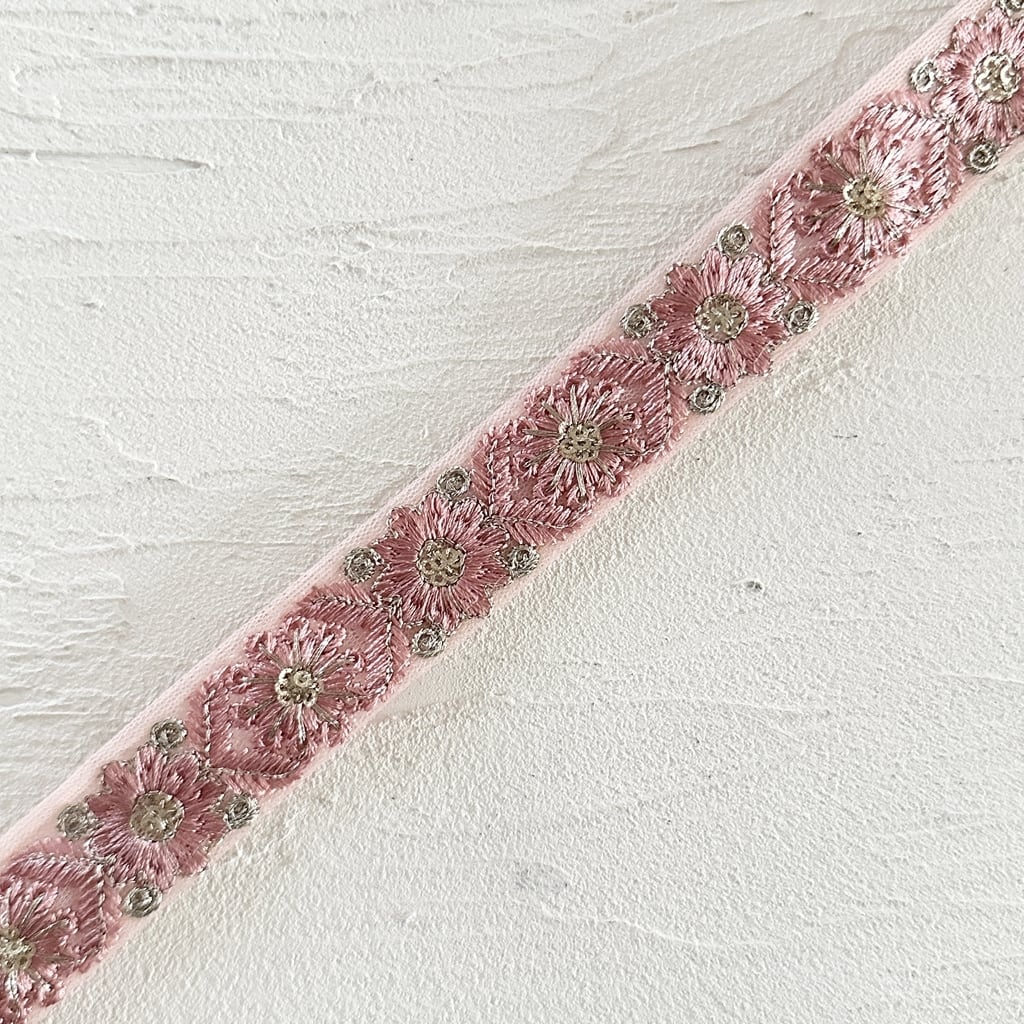 [ピンク]インド刺繍リボン 3566
