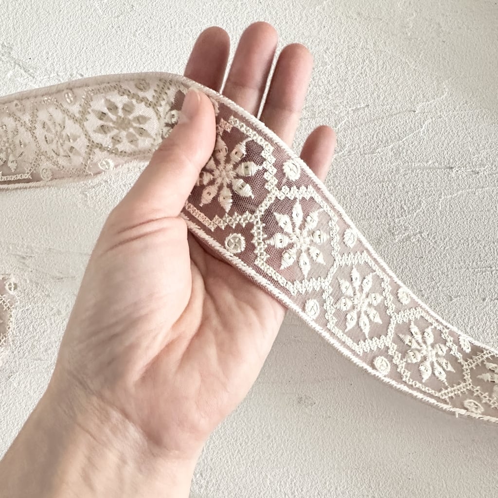 インド刺繍リボンは、細かい刺繍が施されていて色も鮮やかなリボンです。