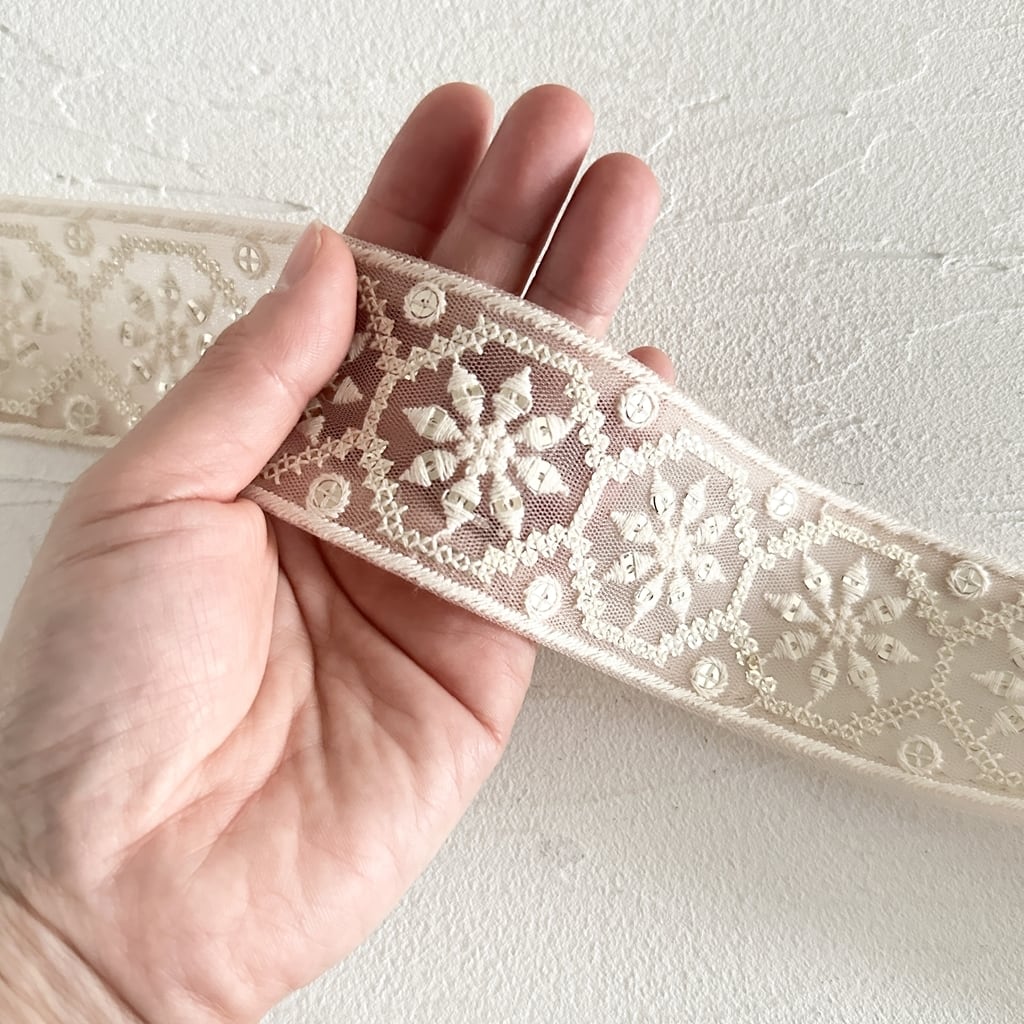 インド刺繍リボンは、細かい刺繍が施されていて色も鮮やかなリボンです。