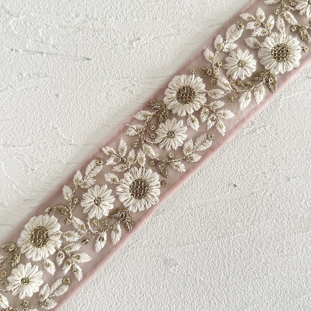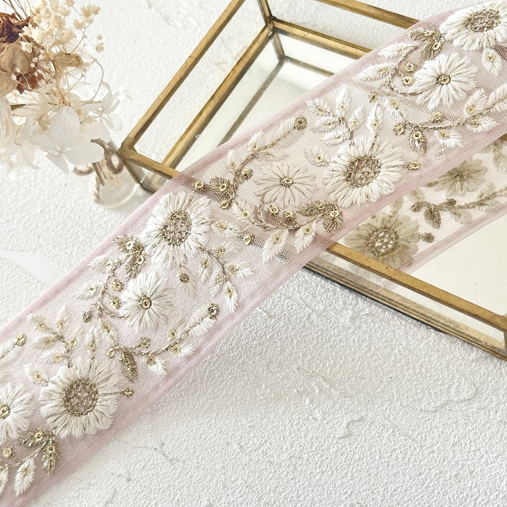 インド刺繍リボンは、細かい刺繍が施されていて色も鮮やかなリボンです。