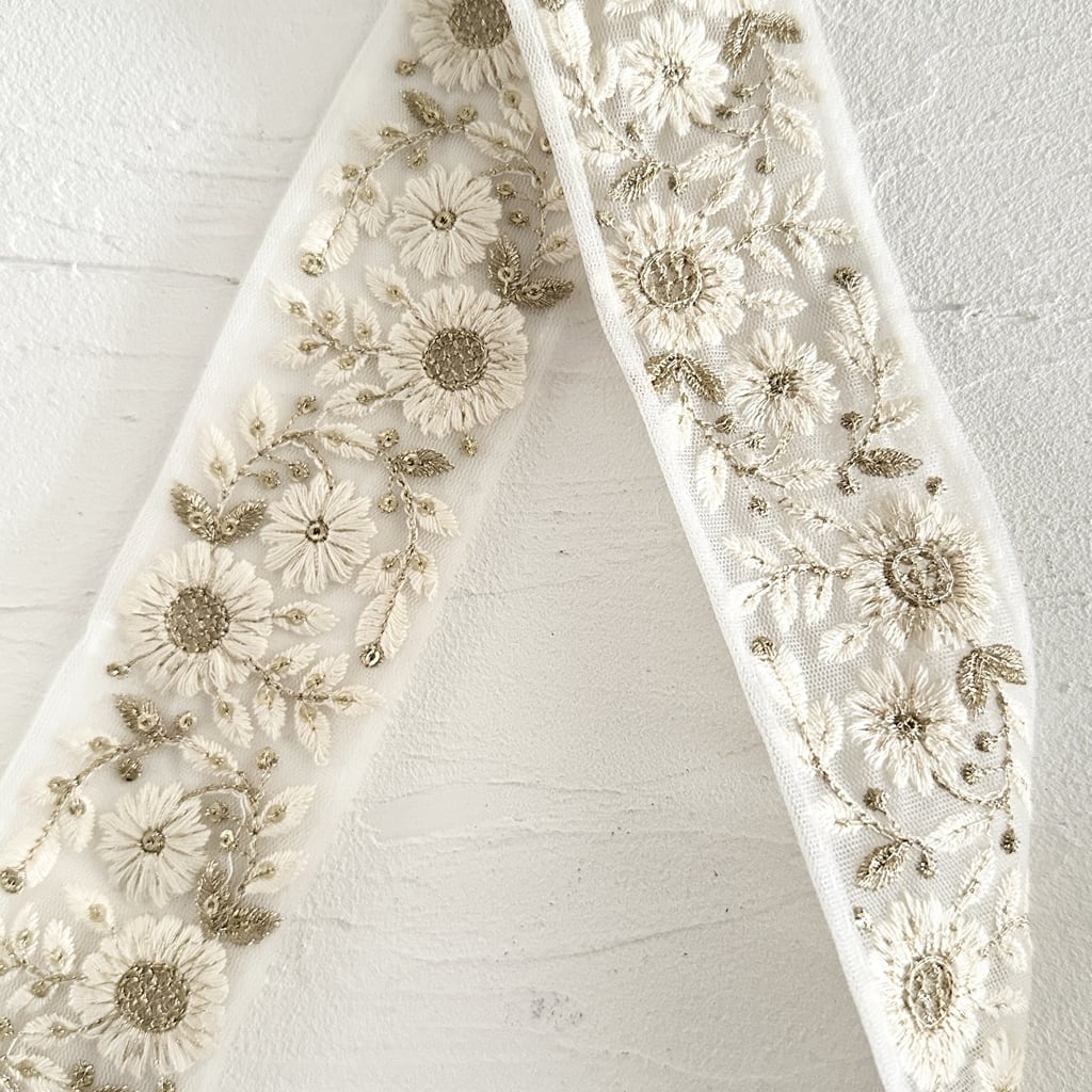 フェアリーテール [アイボリー]インド刺繍リボン 3589
