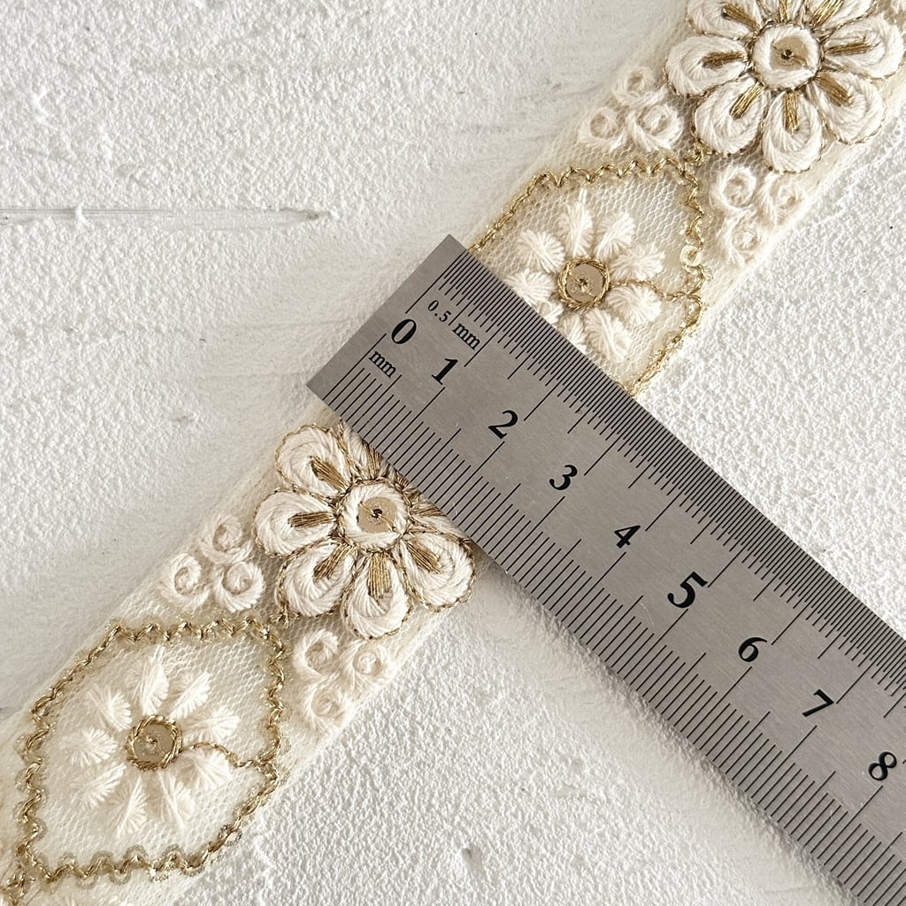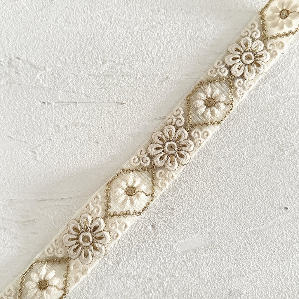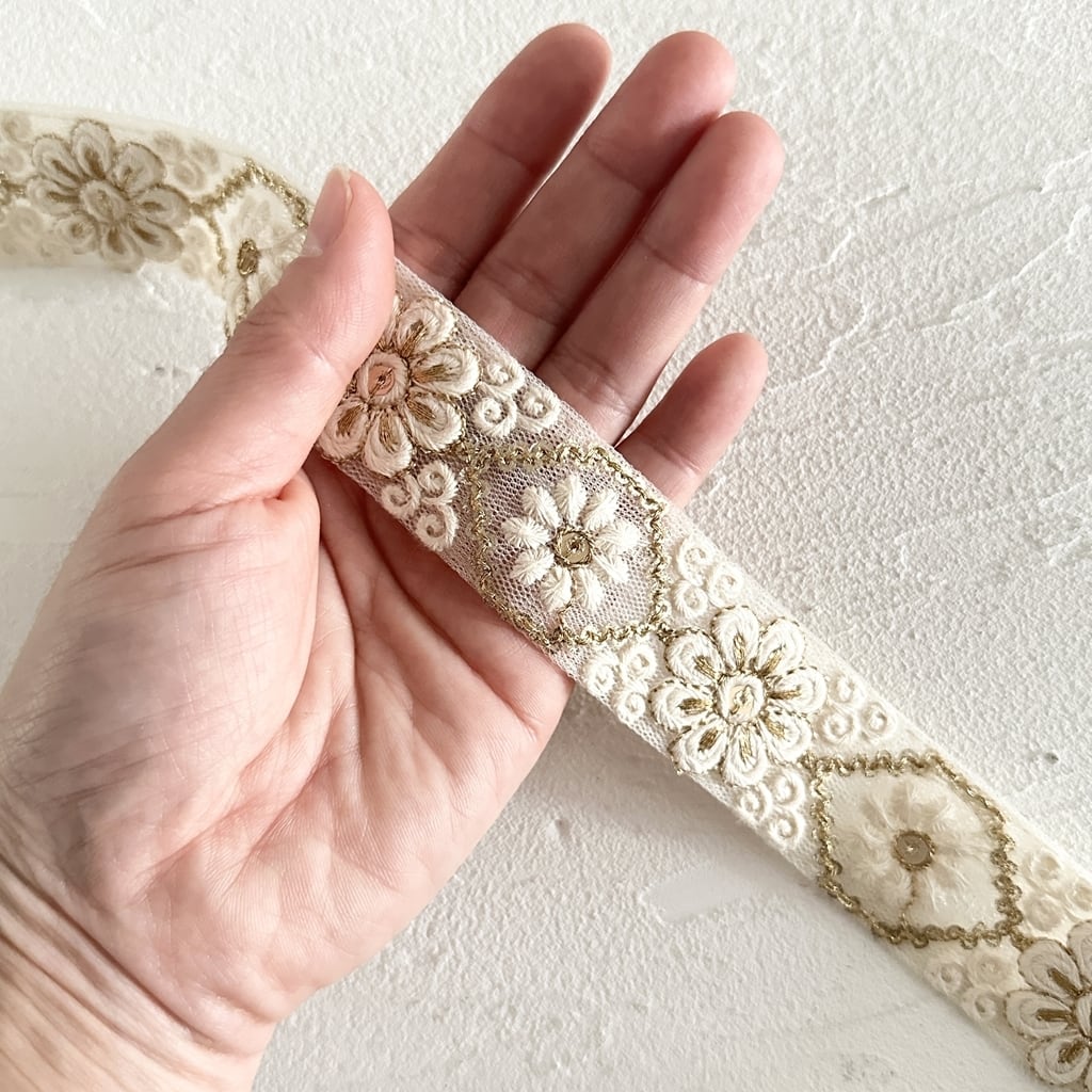 ピュアリー [アイボリー]インド刺繍リボン 3626