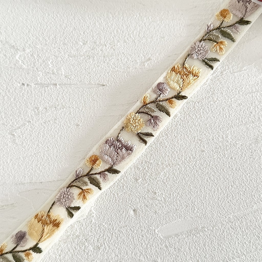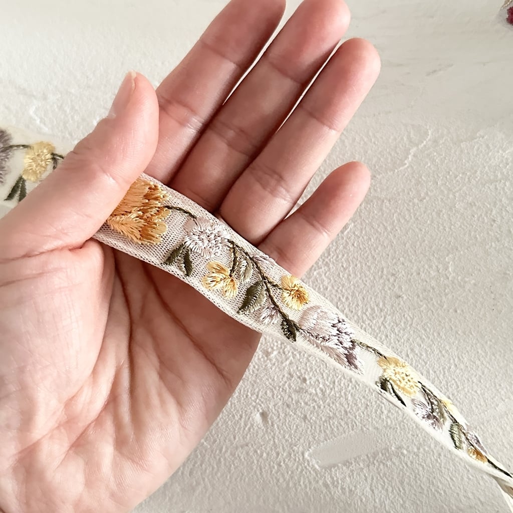 インド刺繍リボンは、細かい刺繍が施されていて色も鮮やかなリボンです。