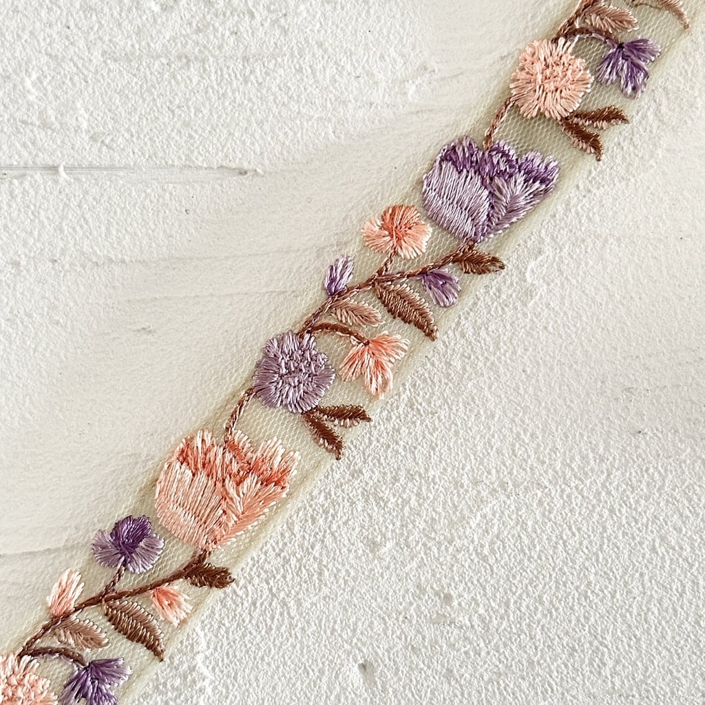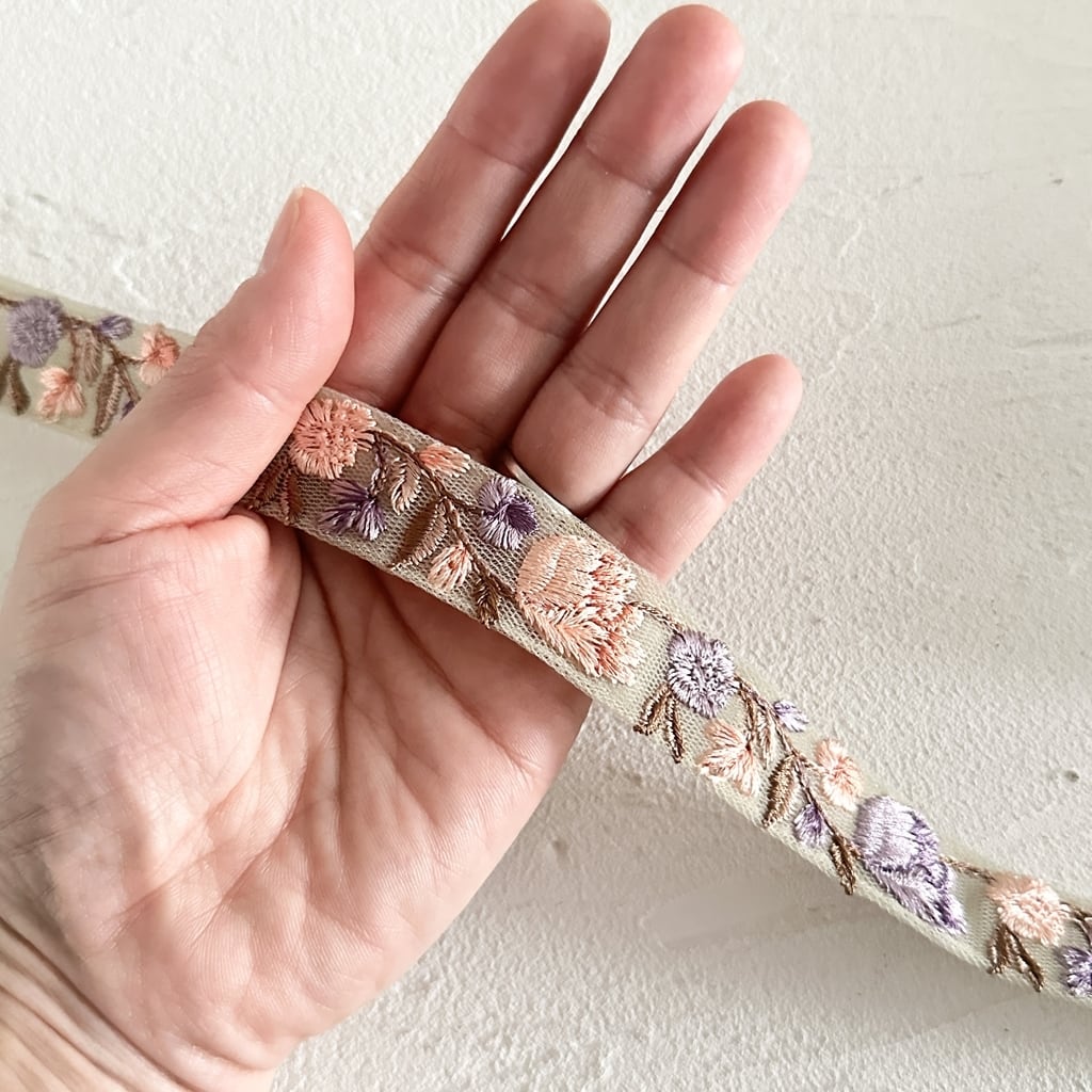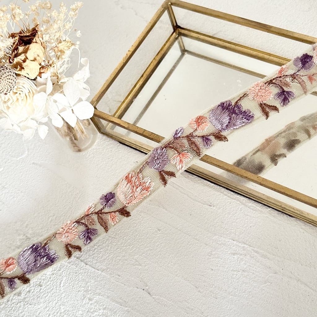 チューリップミニ [パープルベージュ]インド刺繍リボン 3631