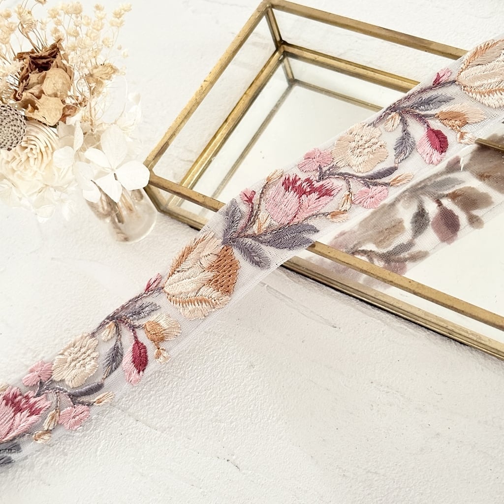 インド刺繍リボンは、細かい刺繍が施されていて色も鮮やかなリボンです。
