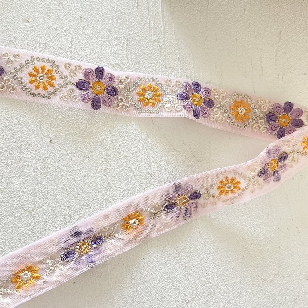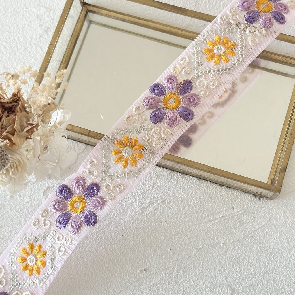 ピュアリー [イエローパープル]インド刺繍リボン 3634