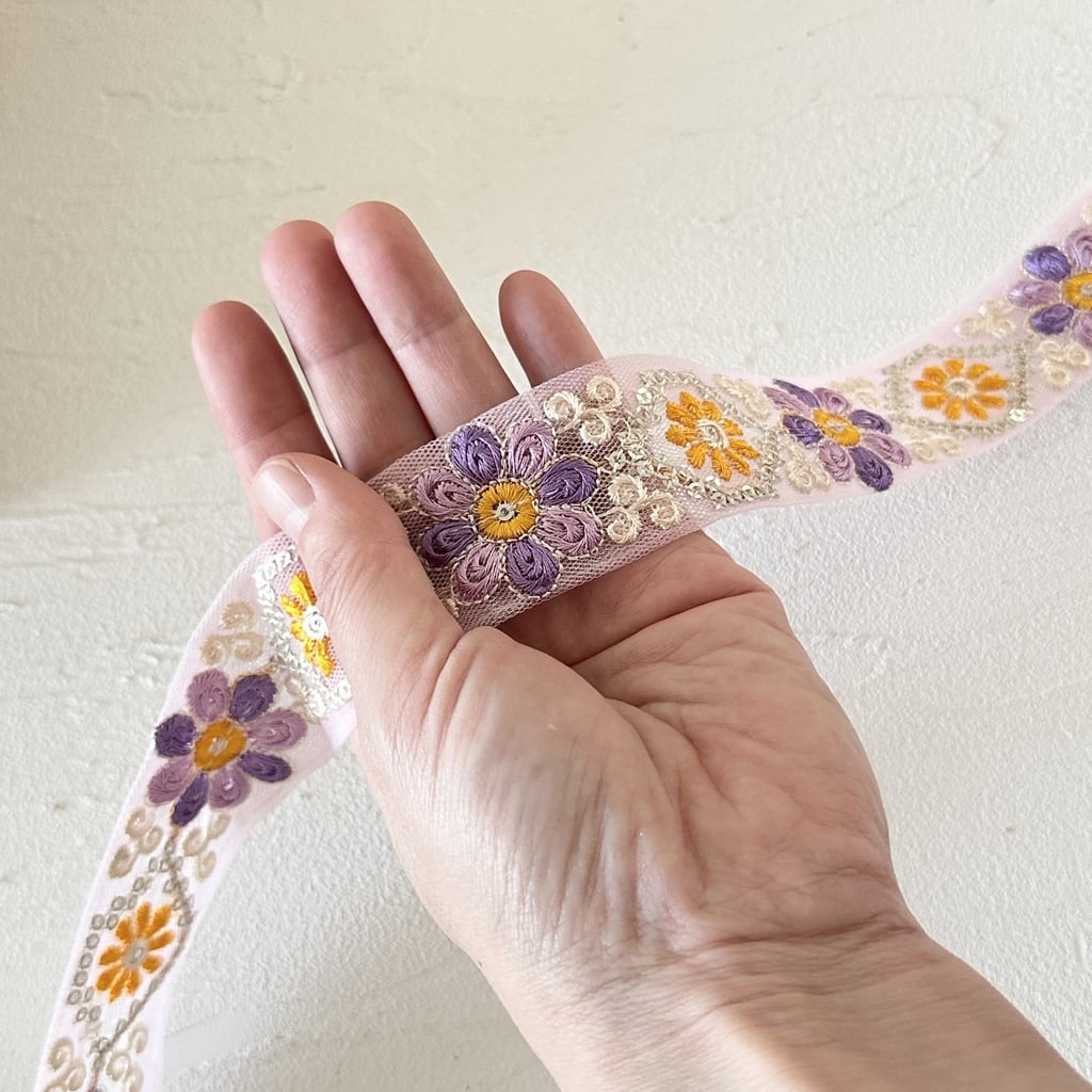 インド刺繍リボンは、細かい刺繍が施されていて色も鮮やかなリボンです。